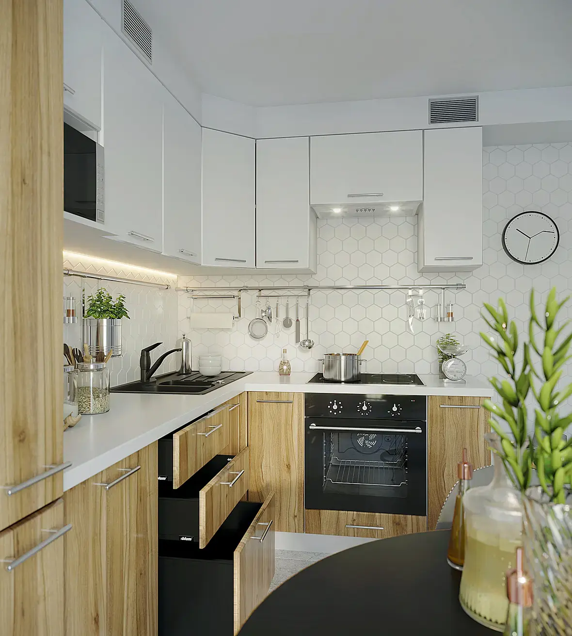 Этот ракурс вроде лучше, но нужно показать всю кухню.
