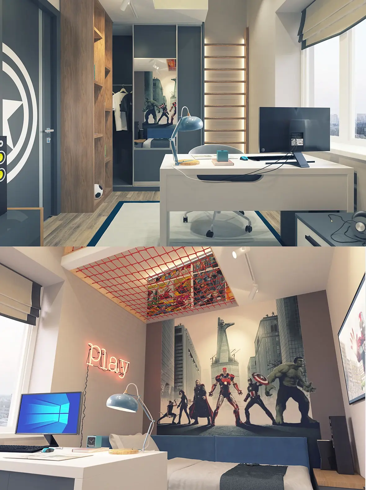 Очень шумно, особенно св-к над столом.Бамп на кирпиче "выдавлен" не в ту стороу.Бэк бы сделать светлее и не таким ядовитым, в смысле насыщенным.Да и композиция - или взять более острый угол для камеры , или выровнять до горизонтального кадра.