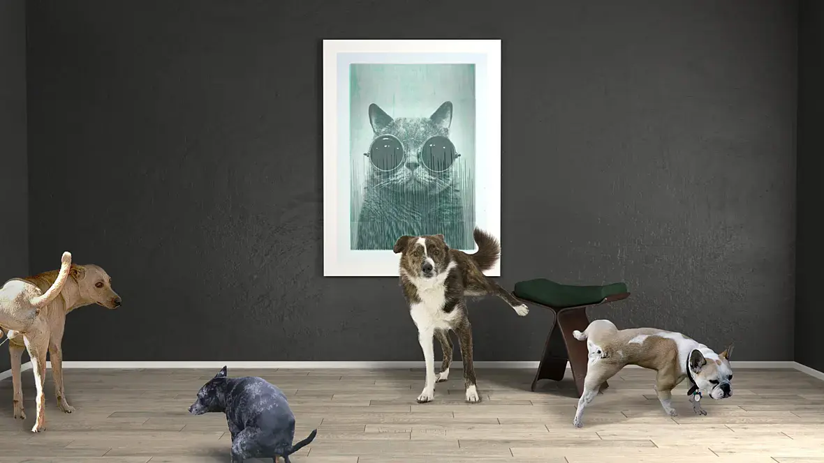 А по сути, не знаю предназначения, но если это квартира, попробуйте ковер какой-то пушистый. Горизонтальную какую-то стоечку с африканскими фигурками. По самым краям - можно что-то вертикальное. Это, если это утилитарный виз. Если это что-то чисто творческое - тогда вообще бесполезно спрашивать совета. Иначе получите вот таких котов и собак))