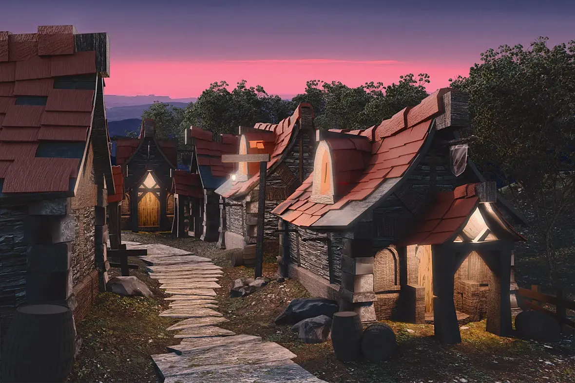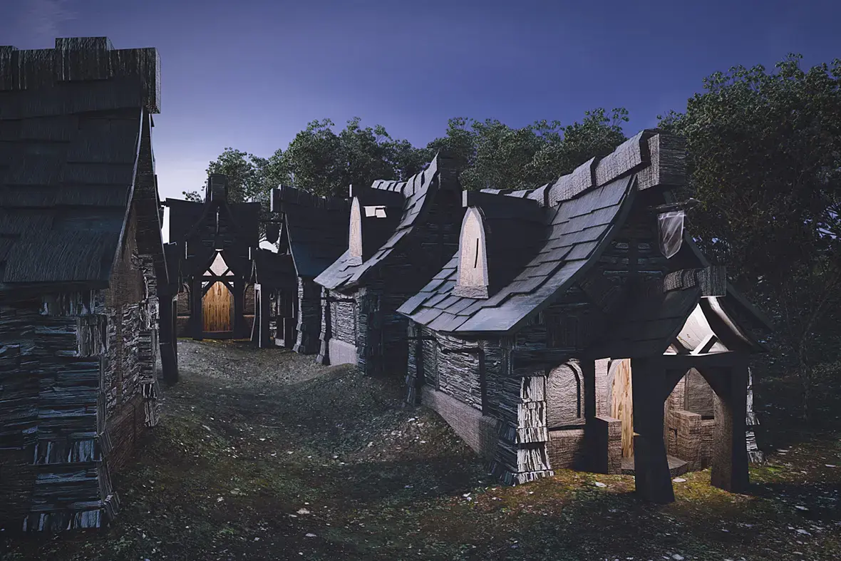 К текстурам придираться не буду - эскиз пока, всё таки. По атмосфере - я бы добавил более интересный фон: горы, заросшие холмы или что-то вроде того. Просто небо - скучновато, а фэнтези скучным быть не должно ни в коем случае. Кроме того небо явно должно быть потемнее + звёзды + луну в кадр.