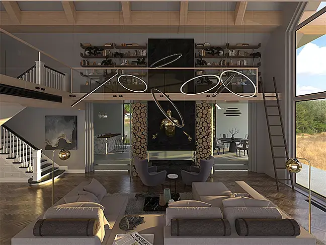 можно еще зажечь огонь в камине и камеру пониже опустить или вообще выше поднять на уровень второго этажа. для расположения камеры лучше посмотреть референсы пор типу этого https://ru.pinterest.com/pin/540220917784190241/