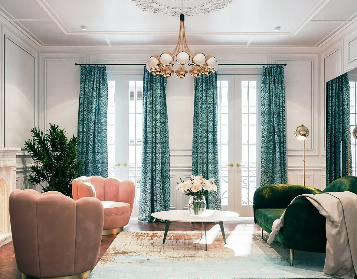 По мне не хватает сочности и гаммы. Я бы повесил другую люстру, что-то из роскошного хрусталя или наоброт из лофта что-то дерзкое, но не эти совковые люстры.