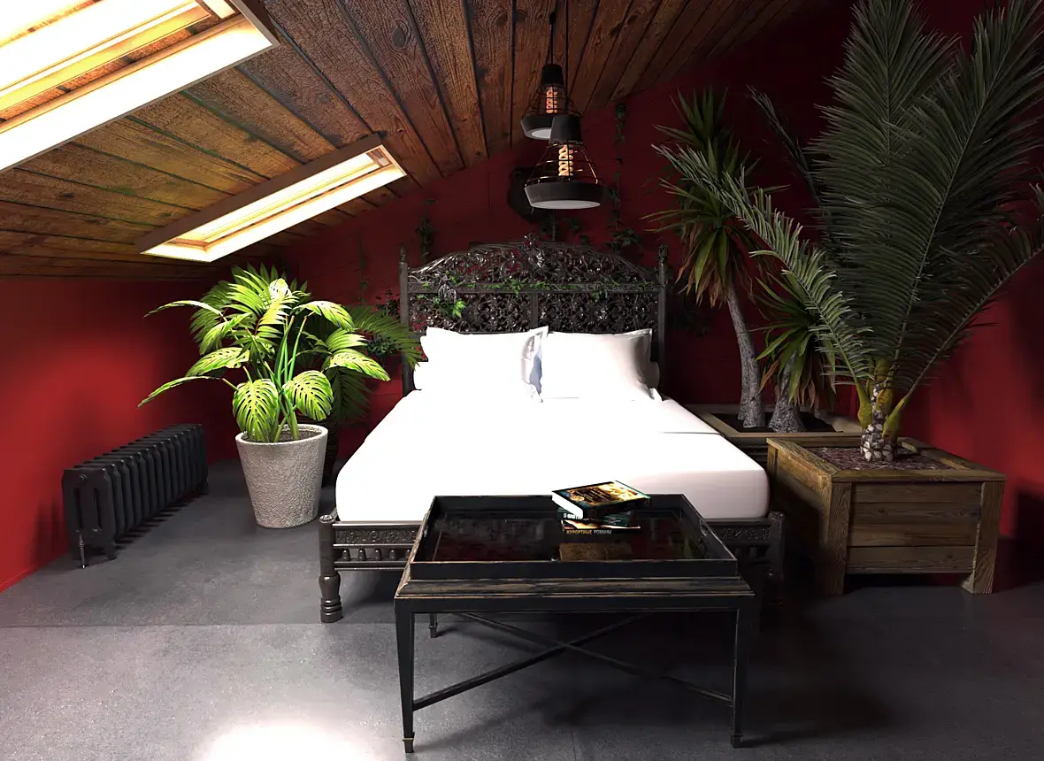 - дерево на потолке слишком неестественное, сделайте что нибудь ближе к тому что справа с пальмой