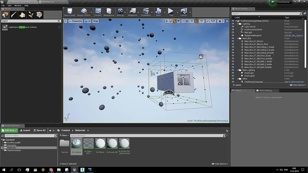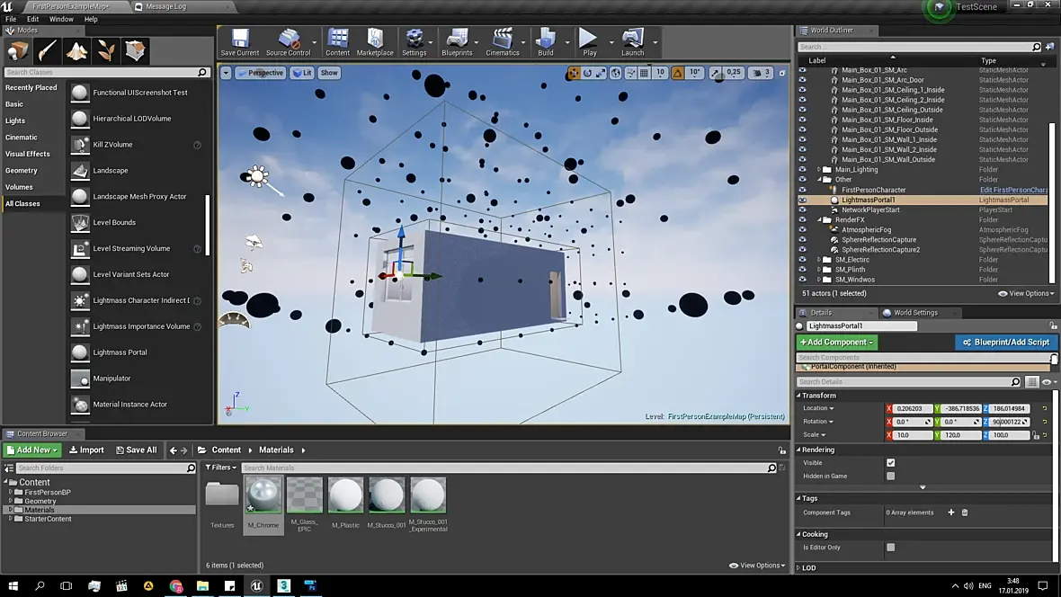 Уменьшу размер LightmassImportanceVolume до размера моей комнаты, меня не интересует что будет происходить снаружи. И буду молиться, что мне кто то подскажет, почему появляются лишние ВолюмСферы Лайтмапа.