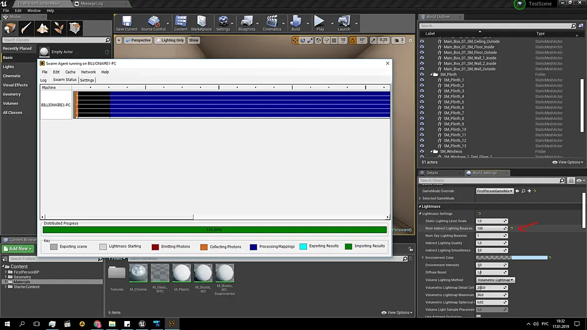 Выкрутил Индирект Лайт Баунс до 100. Скорость билда практически не изменилась: 574,5 sec.
