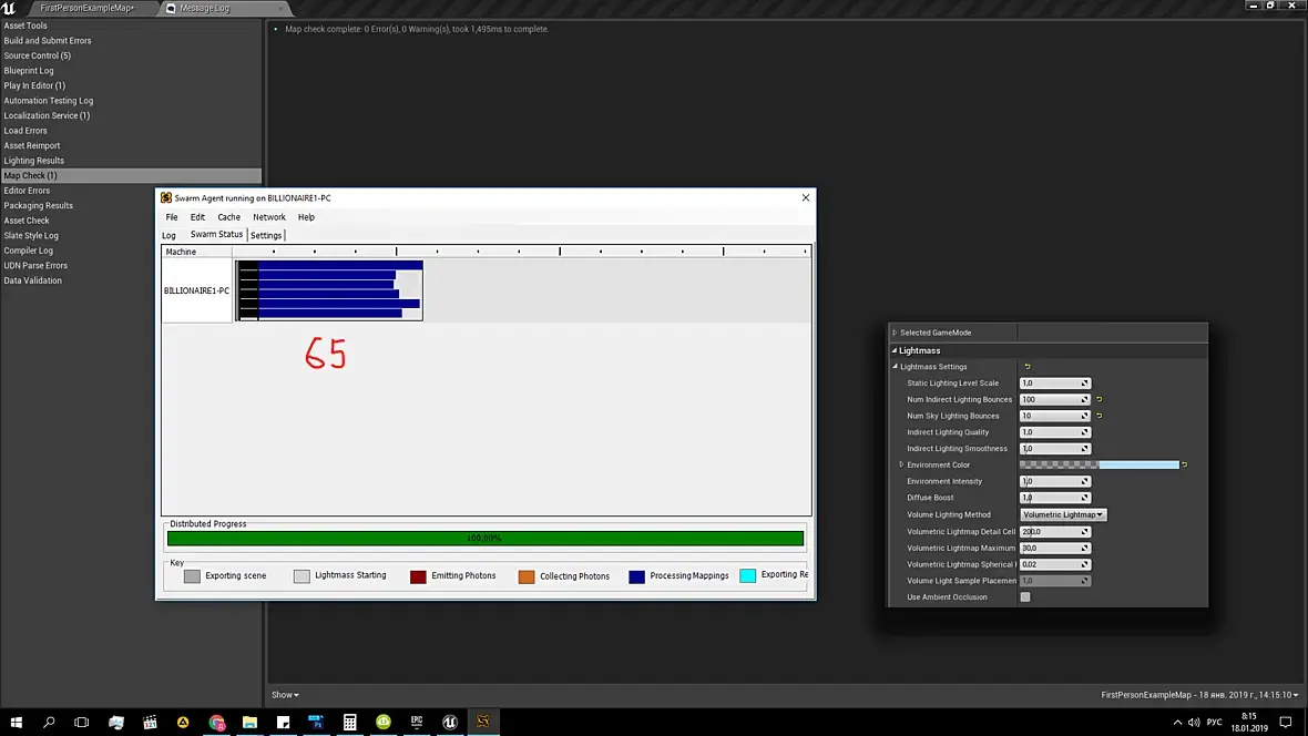 Время билда: 9,4 минуты. (566 sec) Настройки World Settings те же.