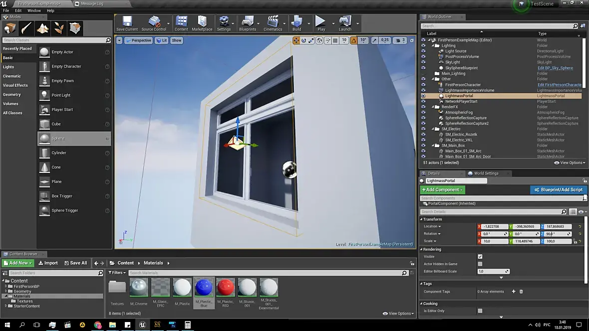 Перевел ВСЕ источники света в Static. Убрал портал на всякий случай. Стало намного лучше. Хотя сферы и появились в моей комнате более осмысленно, какие то лишние сферы всё ещё присутствуют вне комнаты. Я не понимаю причины и меня это бесит.