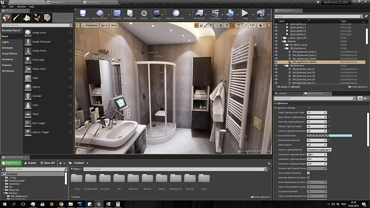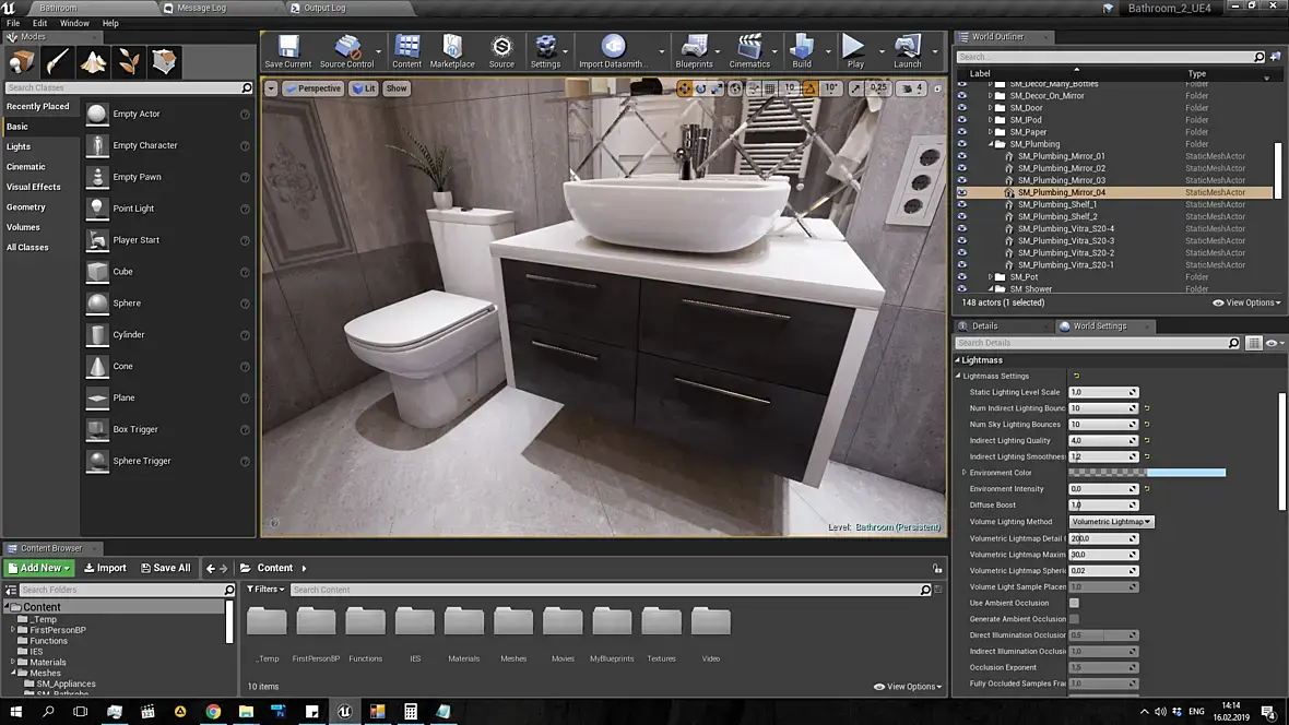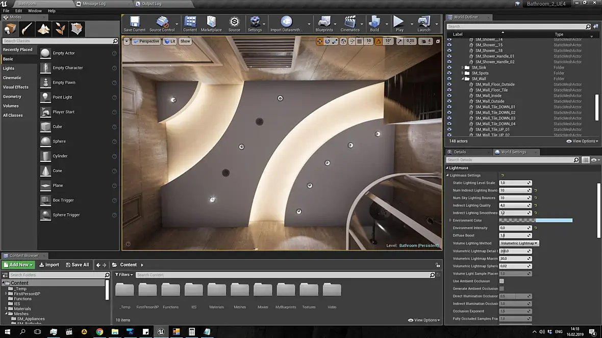 Автору- На мой взгляд вы делаете ошибку пытаясь нахрапом поднять довольно большой объём материала. Думаю вам нужно начать с освоения подготовки и импорта в движок простых пропсов. Модель-> Развёртка -> Сабстанс дизайнер(запекание карт и создание процедурного sbsar-материала для последующего импорта в движок) -> настройка и рендеринг картинки в движке. А потом уже переходить к импорту сцен, когда у вас процесс создания карт и материалов будет налажен.