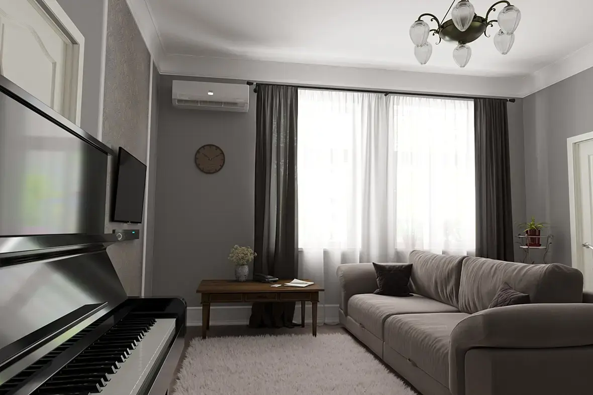 4. Если проект виртуальный и делается для себя, то от кондиционера я бы отказался. Ни разу еще не видел чтобы кондей был удачно вписан интерьер и не портил пространство.
