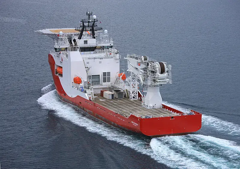 Площадка весьма неудачная. Вернее- полностью не функциональная- на ходу на такую, вертолёт не сядет в любом положении. При посадке вертолёт должен догонять судно- при этом по ходу должен быть обеспечен обзор. В первом случае это невозможно- мешает надстройка. Во втором- он не может садится задним ходом. Я уже не говорю о том, что площадку просто запрещено размещать над рубкой. Так же капитанский мостик, по понятным причинам, не может находится в зоне работы подъёмных механизмов. Поэтому вертолётные площадки, как правило, всегда располагают на корме.