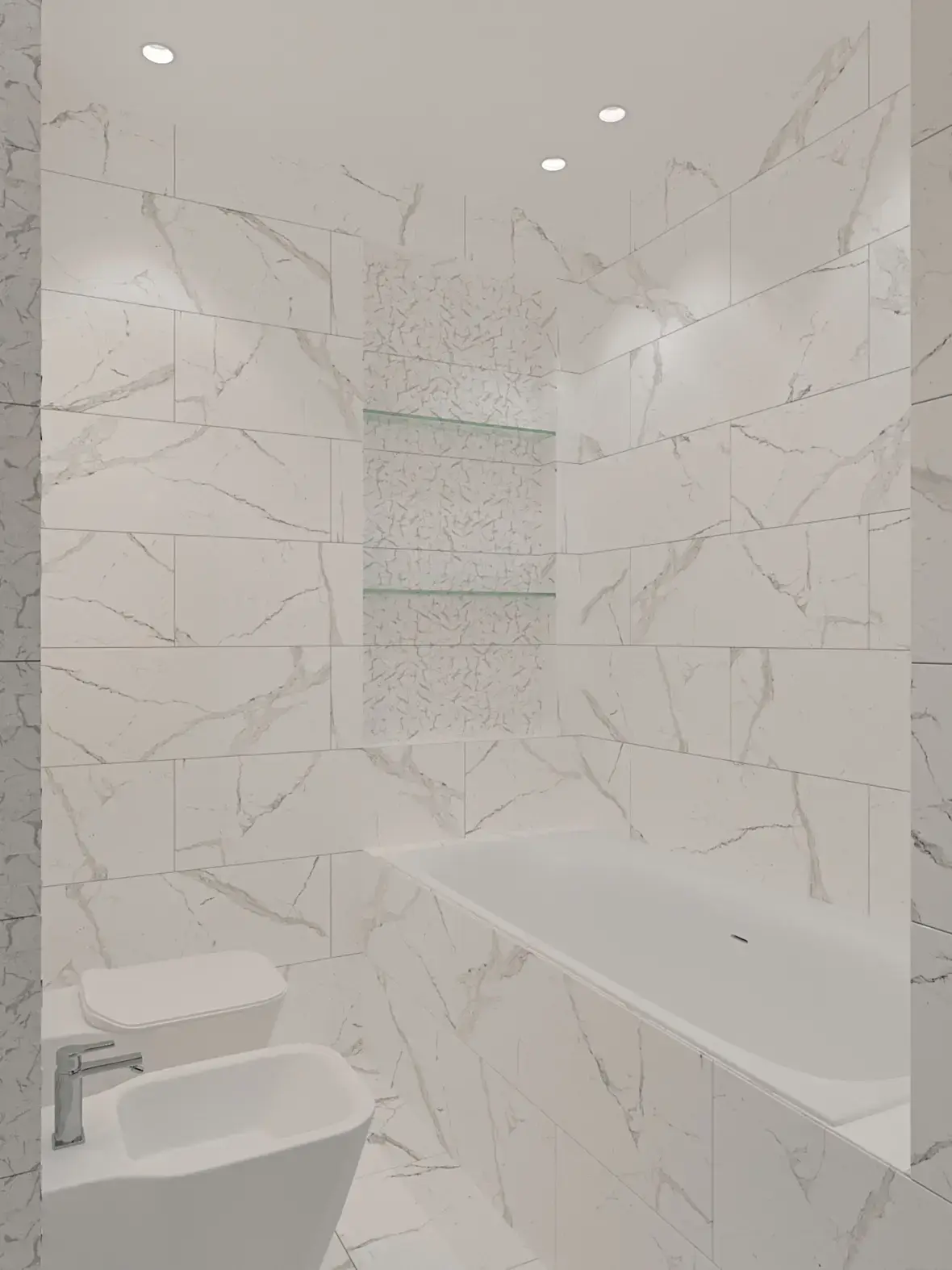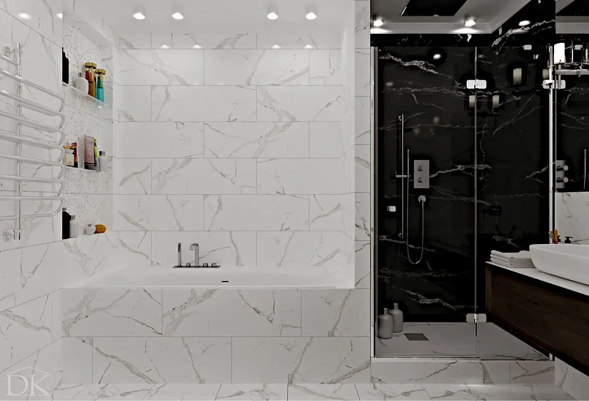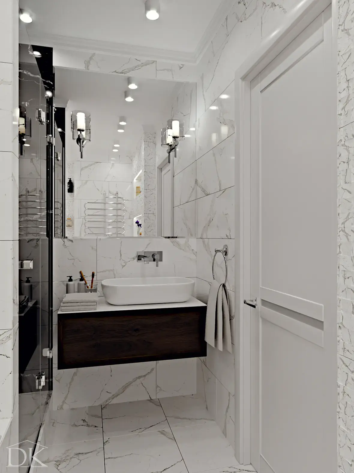 Спасибо! я все по-честному старалась))) если серьезно, все источники света реальные, фейковых нет. Когда меньше экспозицию делаю (или уменьшаю интенсивность точечных) получается темно, а контраста и объема несильно больше, плитка вся белая глянцевая и отражает сильно, поэтому теней где ванна и унитаз вообще нет почти (фотошопом даже немного пририсовала на вертикальных плоскостях). Вот я честно и не знаю, как это лучше вытянуть. Попробую как выше советовали свет на теплый и холодный поделить и наверно интенсивность светильников меньше, а потом постобработкой контраст подтянуть?