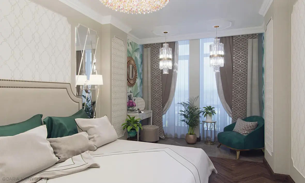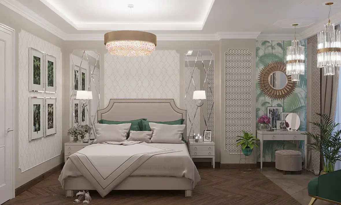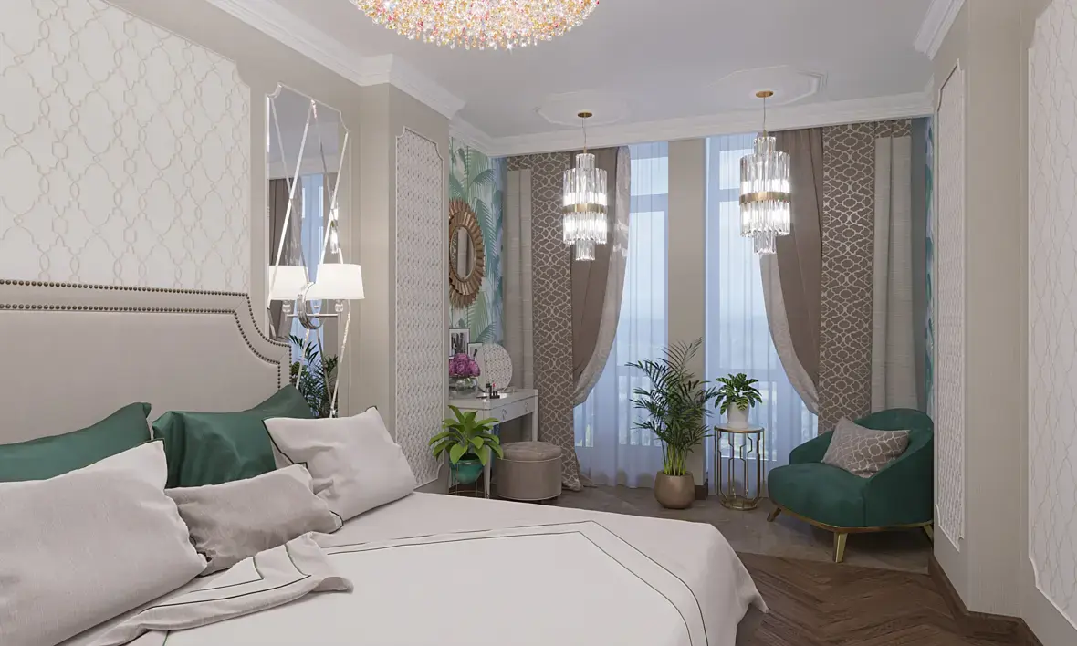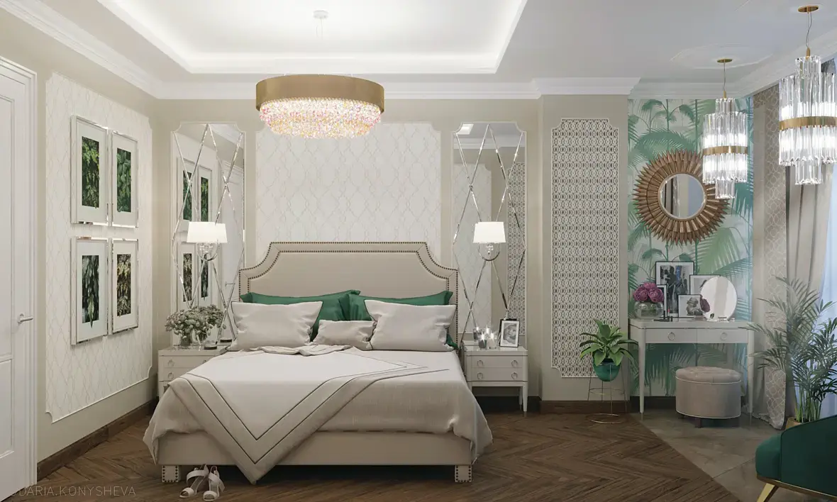 Приглушите зелёный, слишком ядовитым становится после ps, на последней картинке даже на потолке слишком явно проявилась зелень, которую туда прилепил GI. Да и на первой, в углу, над зеркалом. Можно также интенсивность света убавить, а тени, наоборот, осветлить слегка, ибо в углах и под кроватью слишком темно, тем более, из окна свет какой-никакой, там не ночь.