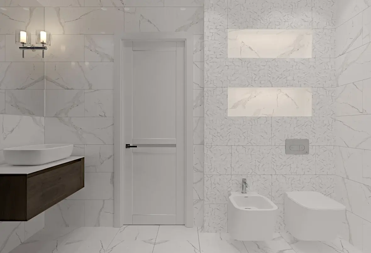 в бра теплого цвета добавь. Сочетание теплого с холодным и тем более в однотонном интерьере будет давать хороший результат. Главное правильно подобрать температуру)