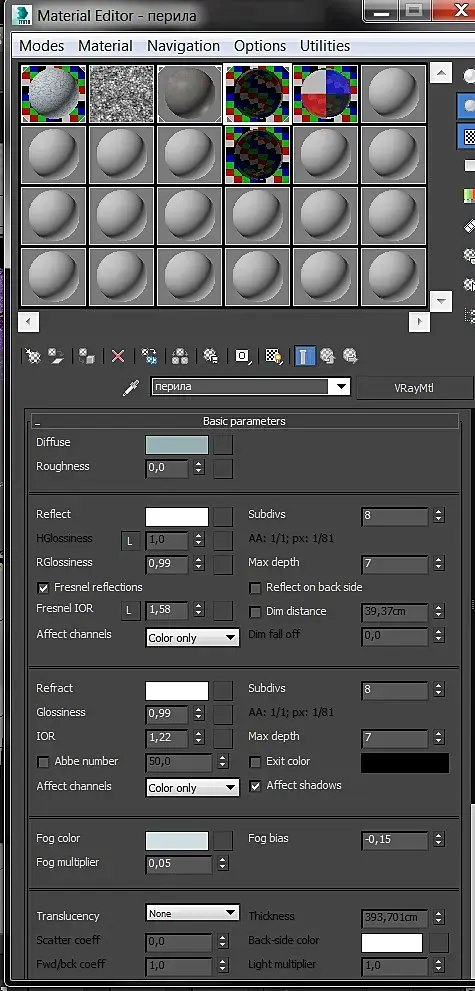 я думаю вы не на том заостряете свое внимание на данный момент,это все (френели) крутится практически на последнем этапе, а у вас еще с геометрией ничего не ясно.