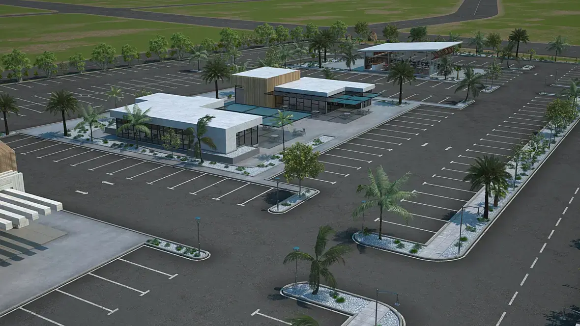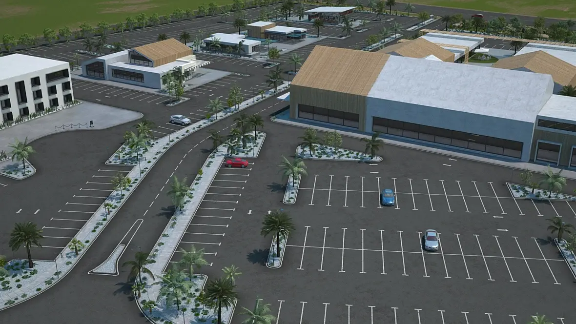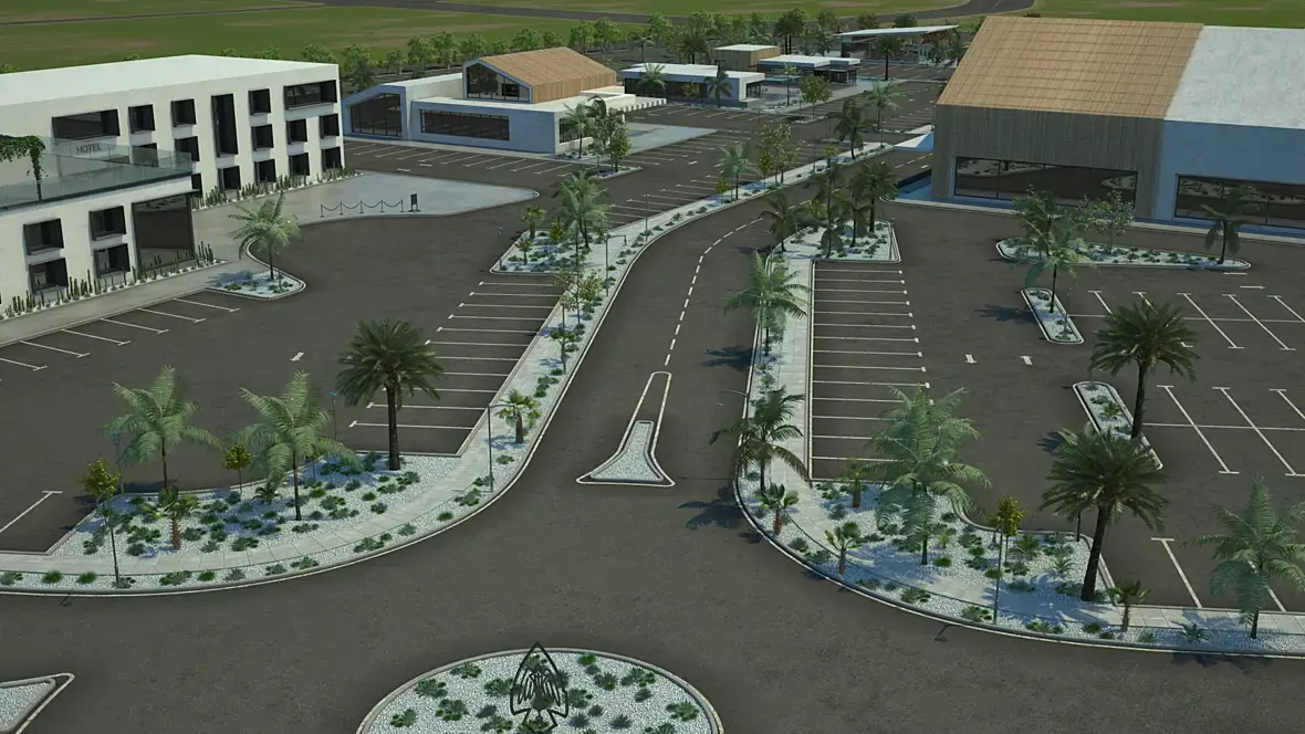 Асфальтовые поля жесть. Это не к тебе вопрос конечно, а к архитекторам, но тебе придётся сильно подумать над ракурсами, чтобы картинки не выглядели вот так: