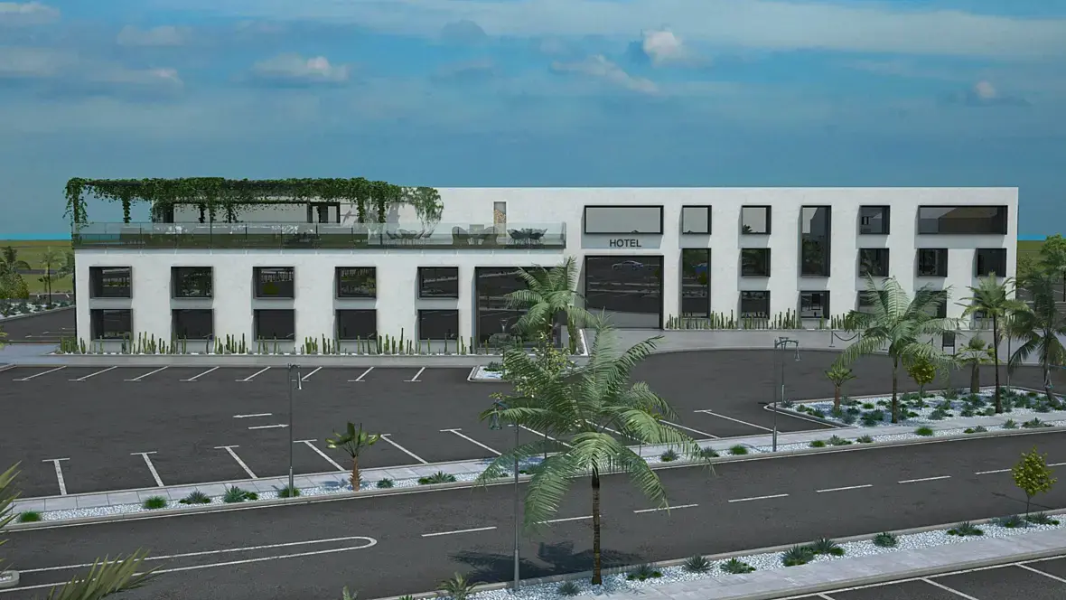Я хотел ее развернуть, но хотят чтоб гостиница была на заднем фоне.