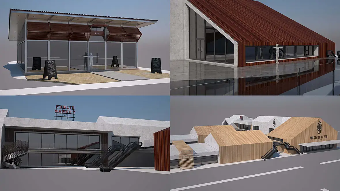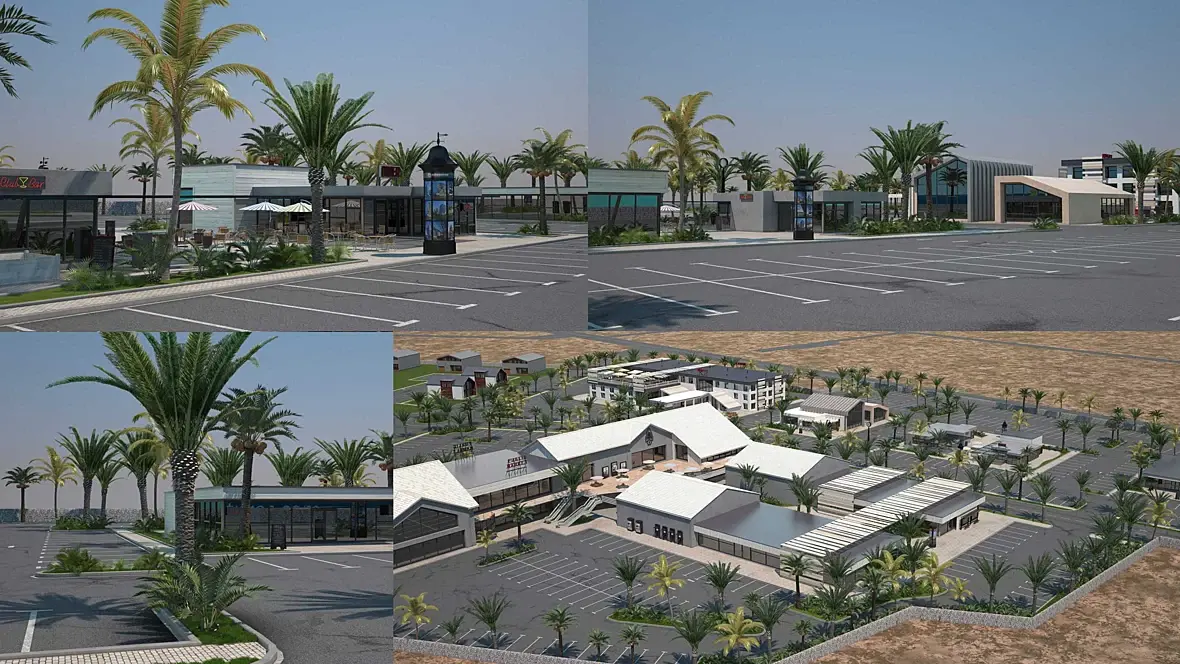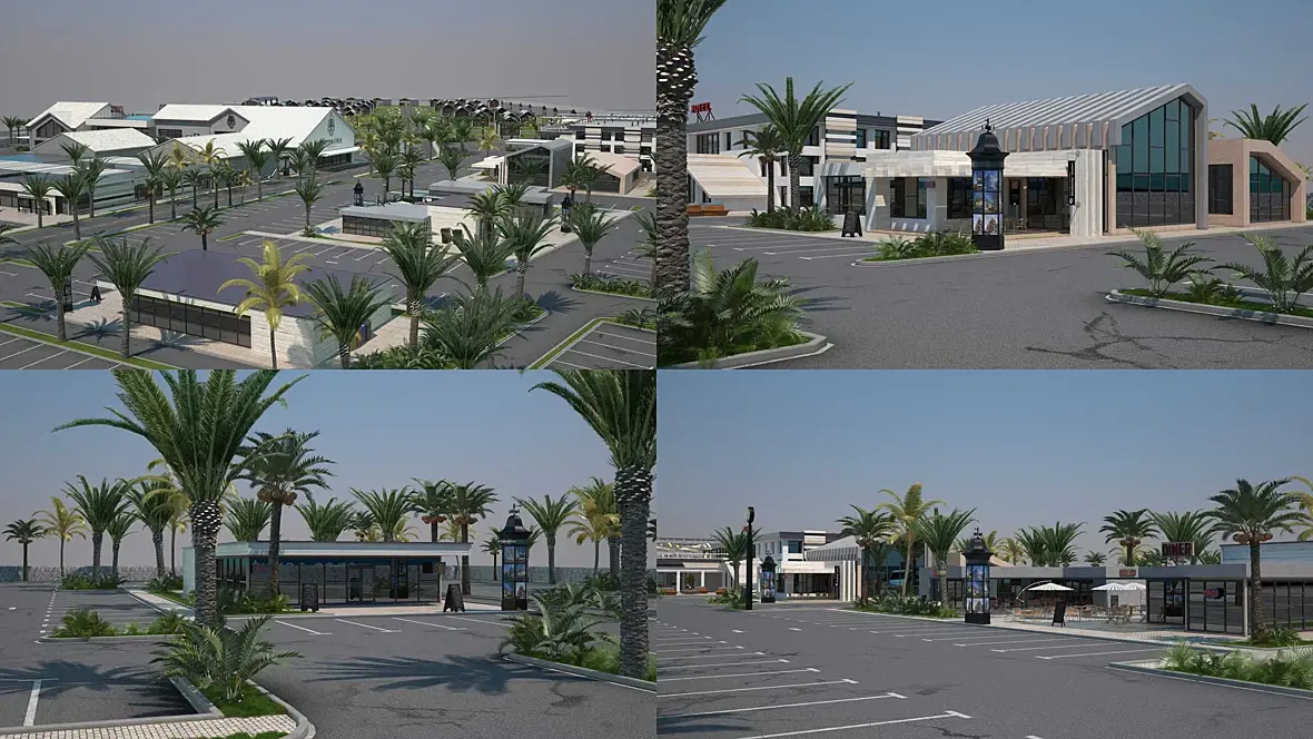Все здания сделал, за моделинг заплатили 30 т.р., сейчас на этапе при-ландшафтного дизайна, ну и некоторые моменты с дизайном зданий переделываю (текстура в основном, не могут определиться.) Местность тоже нарисовал, дороги и т.д. с материалами тоже пока не понятно т.к. они решили бетонные плиты класть вместо тротуара, а заместо травы гальку, пальмы тоже менять будут на деревья, они сначала с архитектором это делали, но тот им не понравился, решили мне доплатить, чтоб я им сделал разные варианты. Вот и вышло так сначала сделал одно им не понравилось, теперь переделываю, но за доплату.