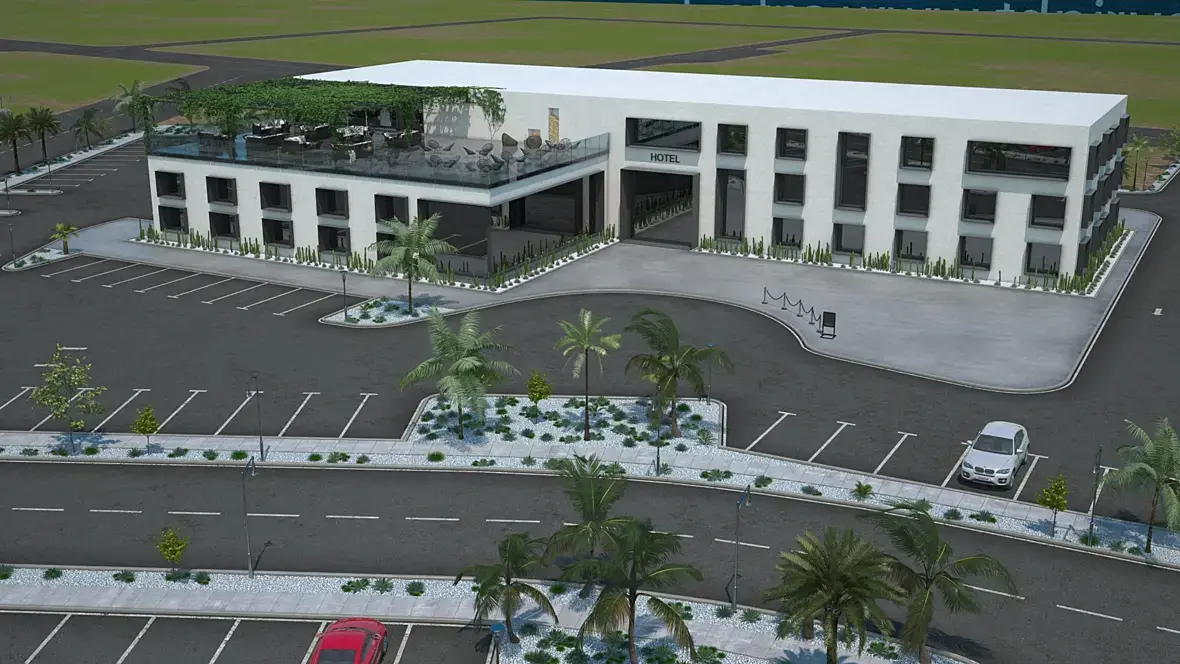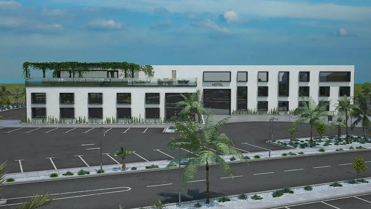 Я хотел ее развернуть, но хотят чтоб гостиница была на заднем фоне.