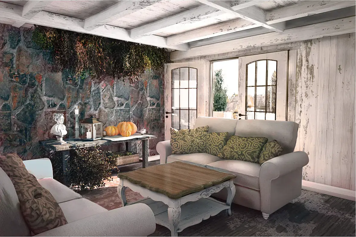 Ну то я так, а вообще- пройтись по материалам. Заменить диваны- слишком уж компьтерные. Столешницу можно поставить, такую грубую- просто из старых досок сбитую.