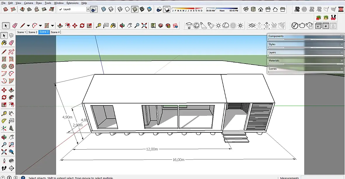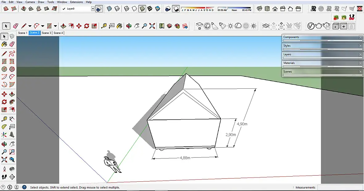 Вообщем скечАп хорошая програ, но до сих пор не могу привыкнуть к двежениям объектов и их масштабированию. Понял, что здания моделить довольно удобно. Но например замоделить камень, уже не очень )