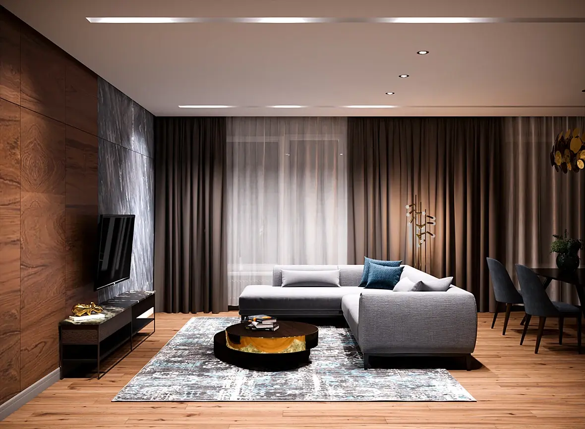 Теперь что касается фотографов. Одни экспонируются по интерьеру. Другие по экстерьеру + включают искусственный свет. Третьи снимают с разной экспозицией, а затем делают монтаж (приближаясь к тому, как видит глаз). Что реализм для Вас выбирать только Вам. А как выберете, то будет находиться заказчик именно со схожими взглядами. В интерьерах главное показывать приближенные к реальным материалы. В этом помогает белый свет. Поэтому основной должен быть именно белый. Если решаете включить искусственный свет по всему помещению, то лучше без желтых. Потому что он подмешается в каждую фактуру, и его будет тяжело вывести, а так же настроить необходимый оттенок.
