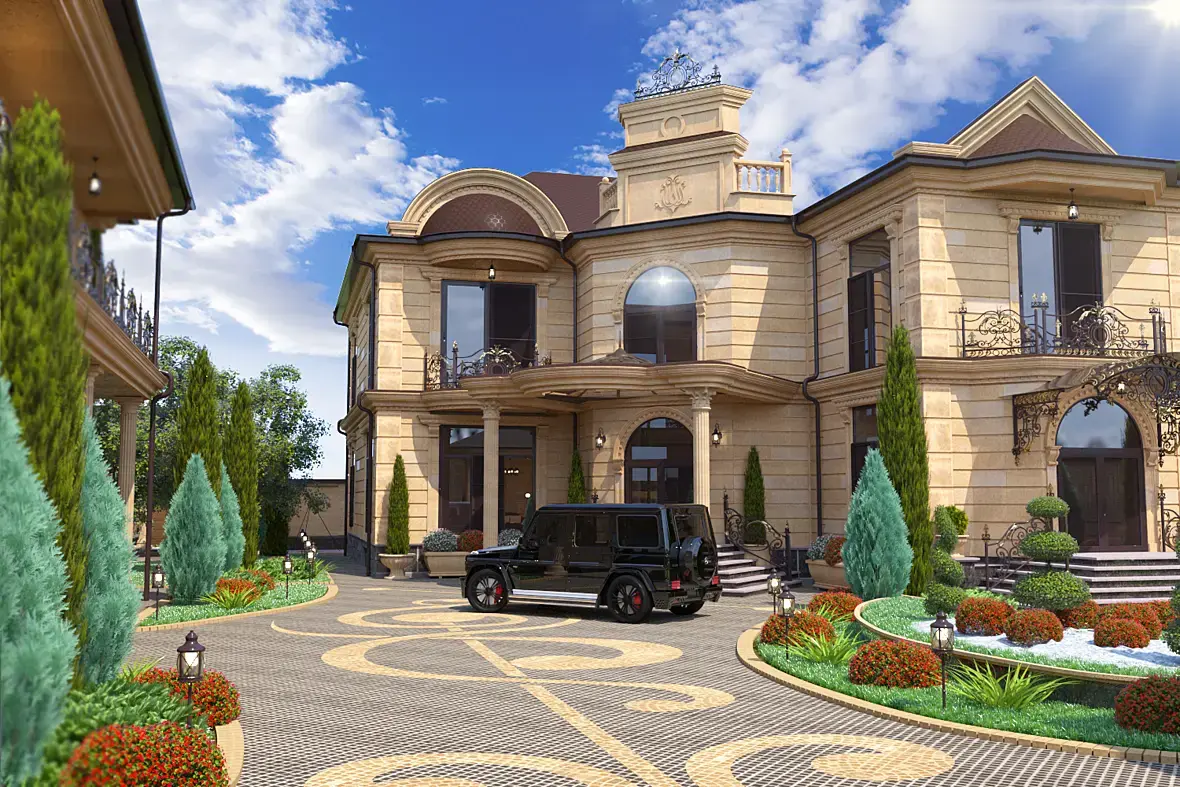 дикая насыщенность, очень ярко, небо вообще не отсюда. Яркий день, весь свет включен, зачем? Белая обводка на фоне вокруг объектов сильно заметна. Гелик припарковали очень странно, так только специально толкаться и вставать. Материалы машины вообще не проработаны, лучше бы её не было. Вообще, всё какое-то мыльное, пережженое, перенасыщенное. Вертикали завалены, стеклам нойза на бампе не хватает. В общем, продолжать можно очень долго, указывая на ошибки. Про архитектуру промолчу, хотелось только уточнить, объект находится где-то на кавказе?