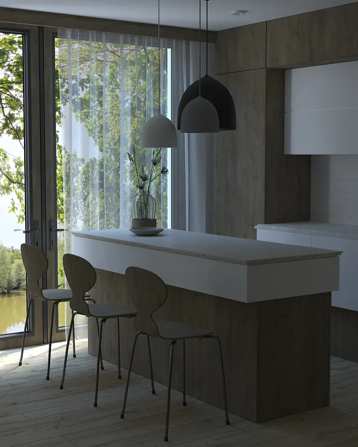 ), не хватает цветов, насыщенности. С балансом белого поиграть. Дерево везде одно и то же (одна текстура). Думаю стоит использовать разные текстуры, отличные по тону.