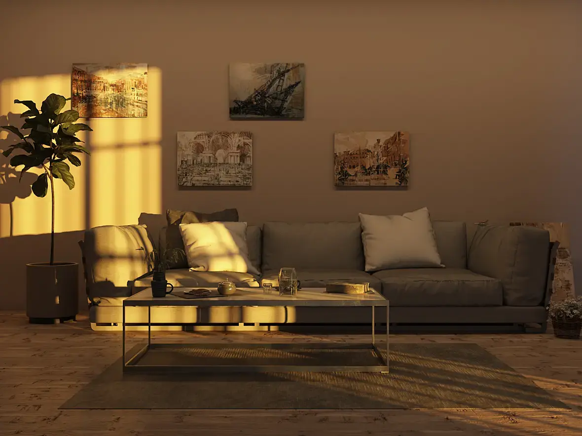 Материалы в таком освещении проанализировать сложно - не видно. Хотя видно дырки на месте швов на диване.