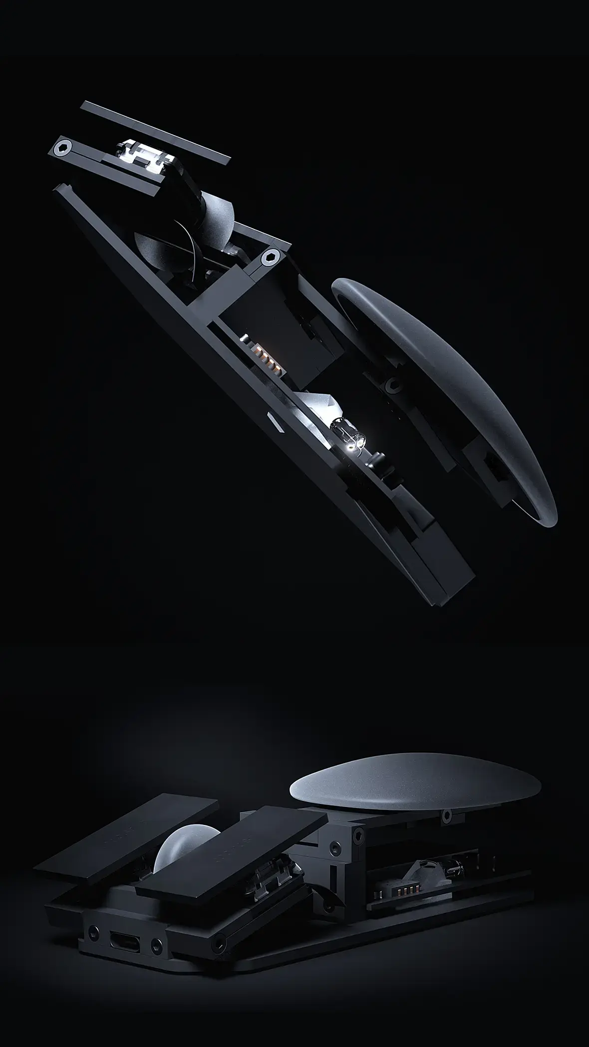 Это же работа в процессе. Я сюда скидываю картинки из интерактива короны. Конечно будут боковые поверхности, положение которых можно будет регулировать. Собственно дизайн мышки в этом и заключается - все поверхности и кнопки которых касается пользователь можно будет отрегулировать по высоте, углу итд.