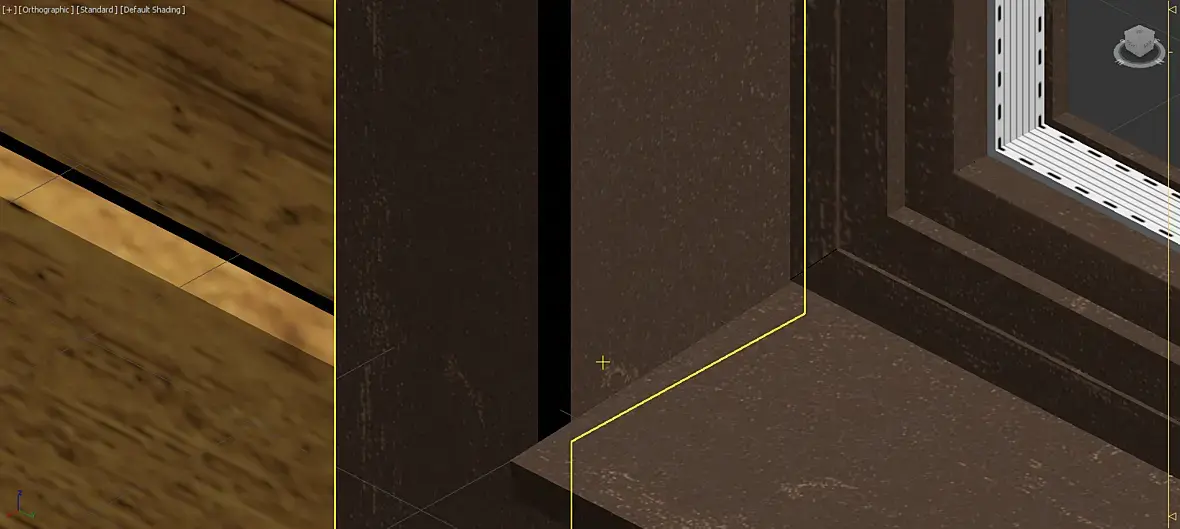 - Дёрта добавьте брёвнам на стенах домика и рыжей плитке на полу. Чтобы стыки отчётливей и естественней читались.