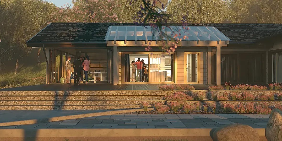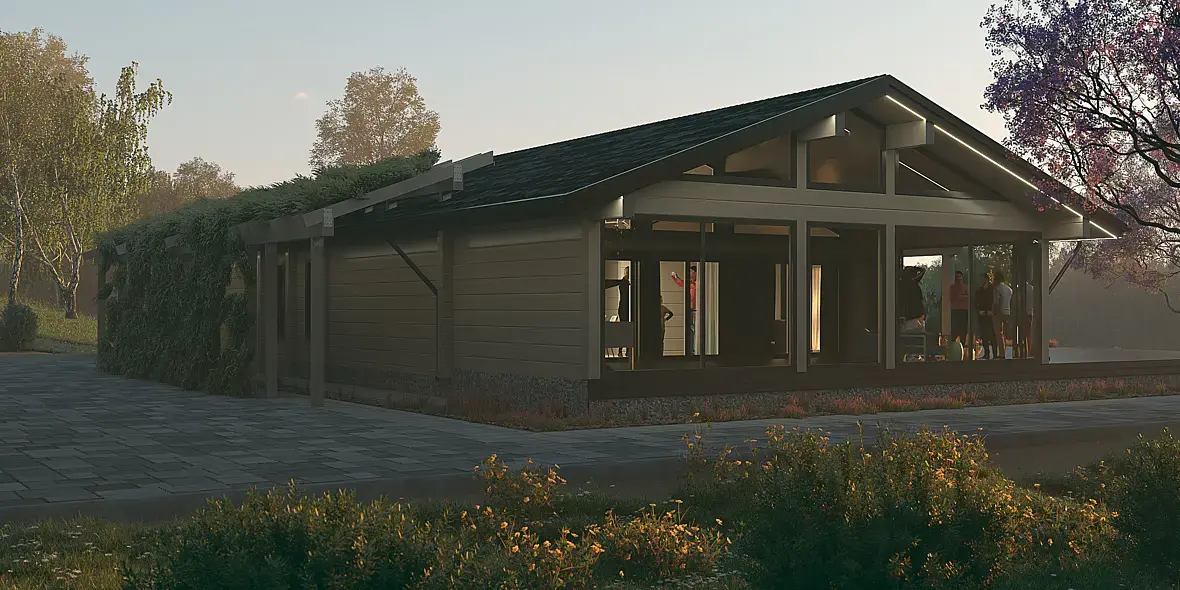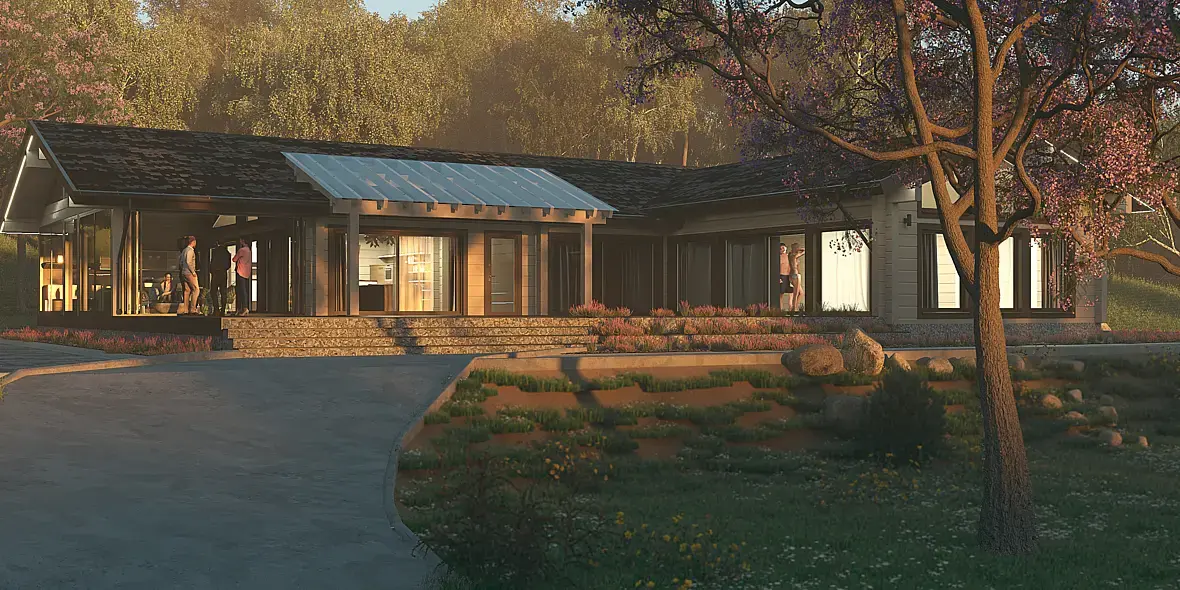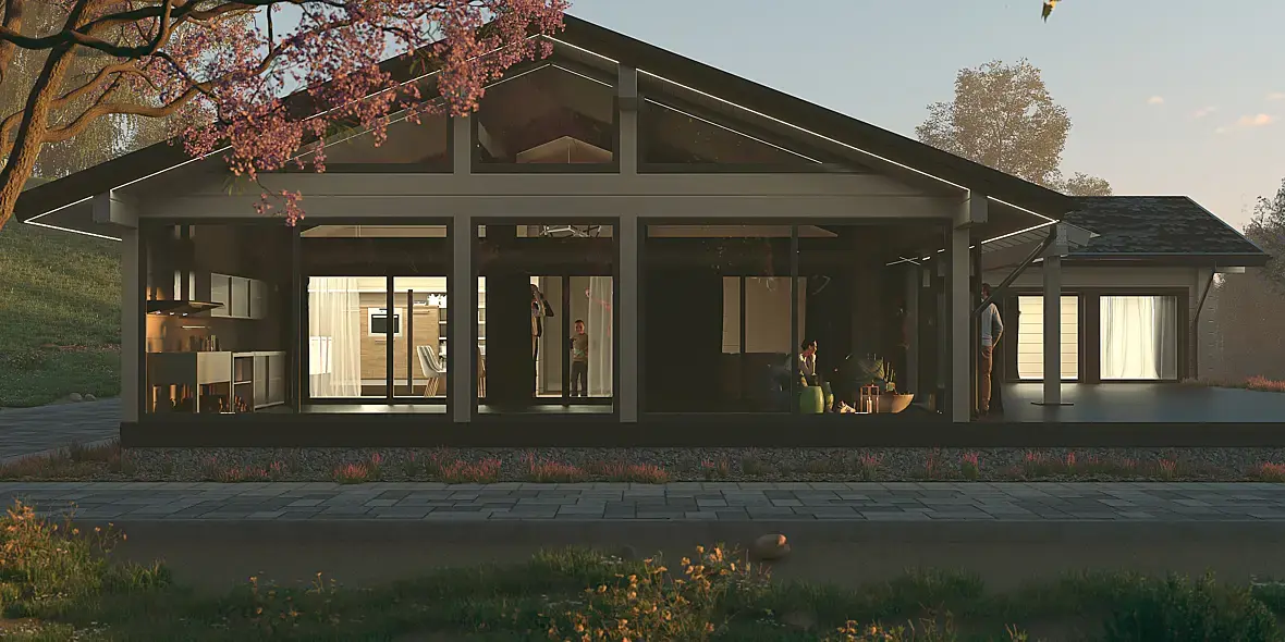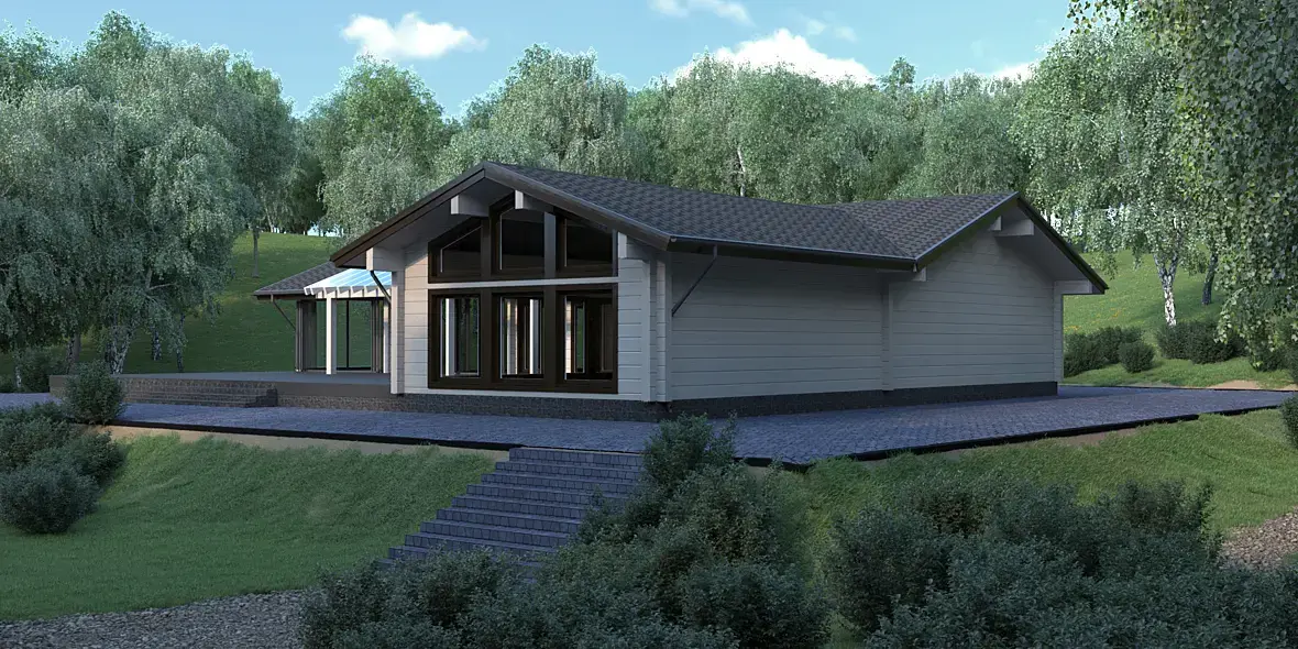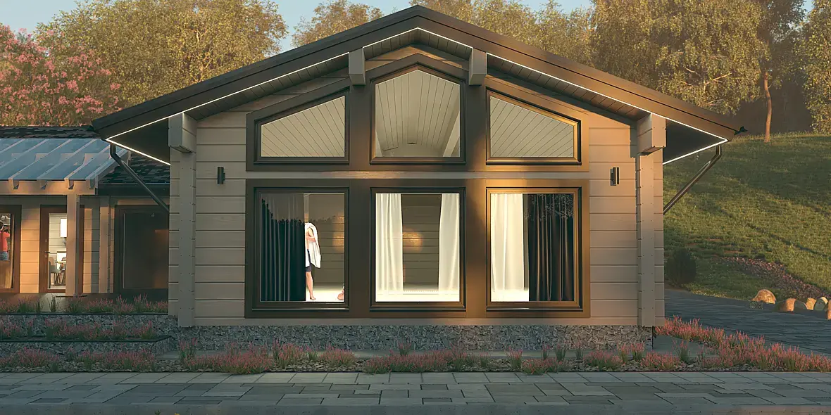 Но черные окна без отражений смотрятся очень некрасиво, и из-за них пропадает глубина дома.