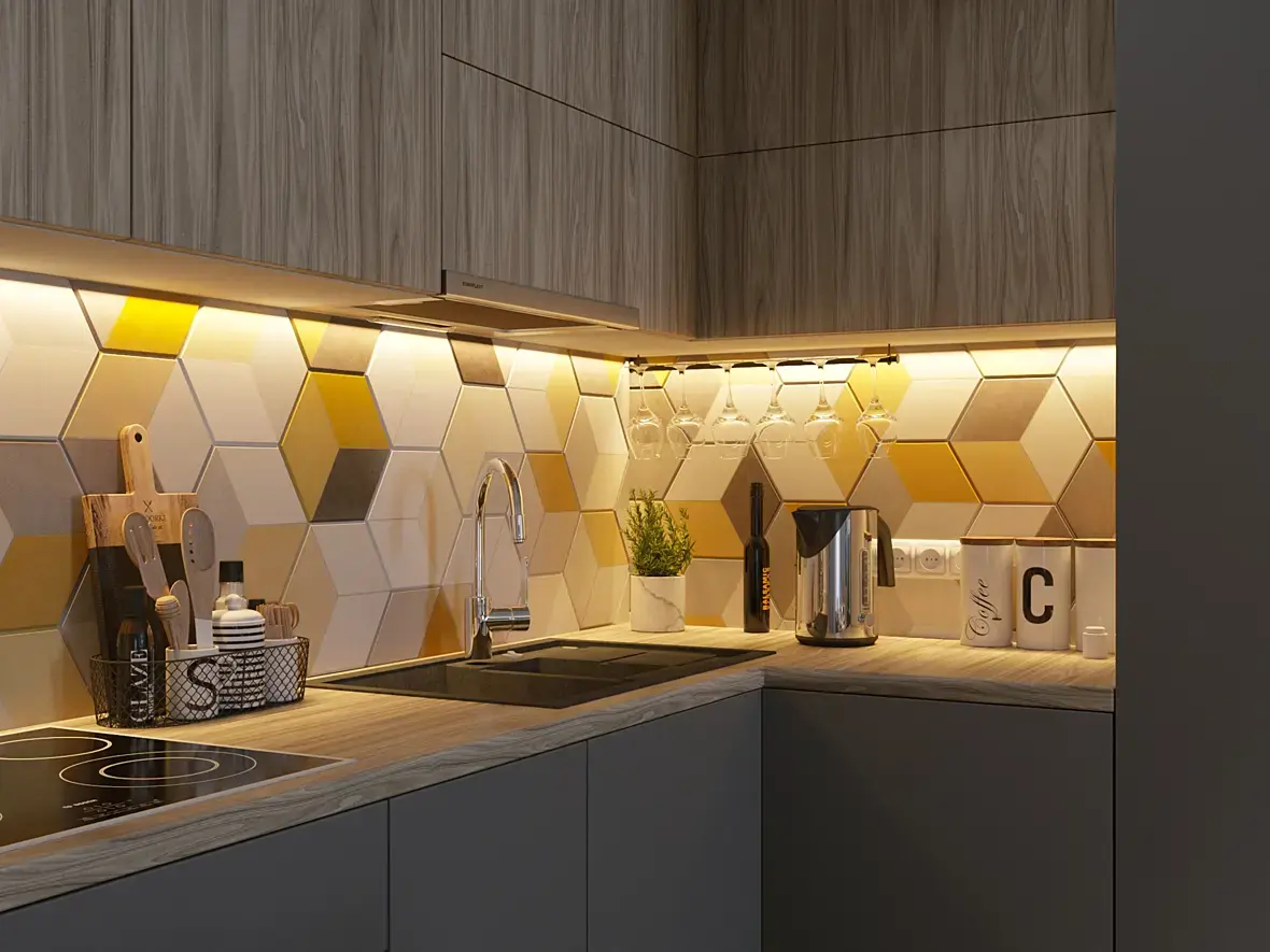 - тайлится дерево на фасадах кухни