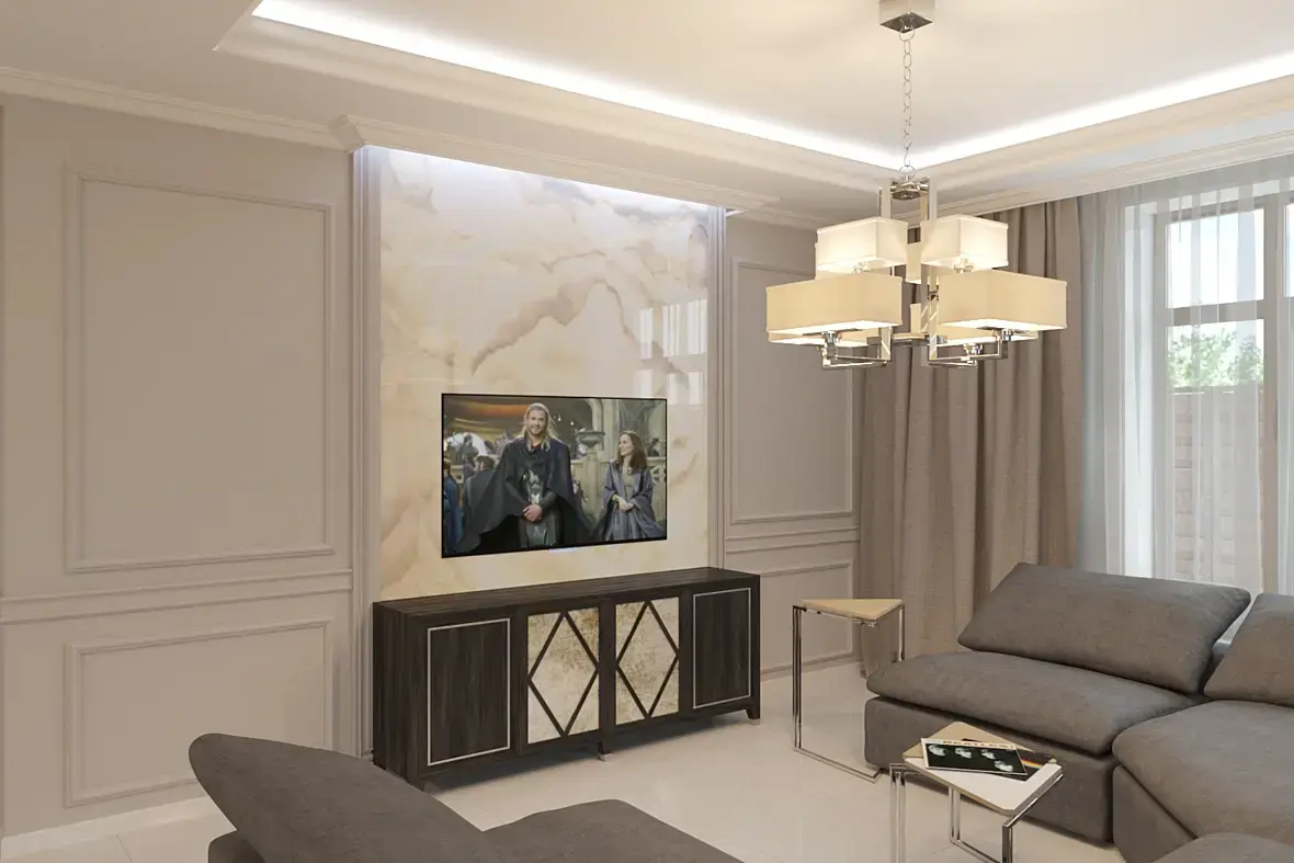 соответственно необходимо изменить гостиную и все остальные помещения, так как они не подходят по стилистике, помогите!!! Вот думаю как изменить теперь гостиную. Никаких реек, никаких деревянных панелей, чем украсить гостиную, если уже и освещение все остальное по потолку подготовленно под предыдущую визу.