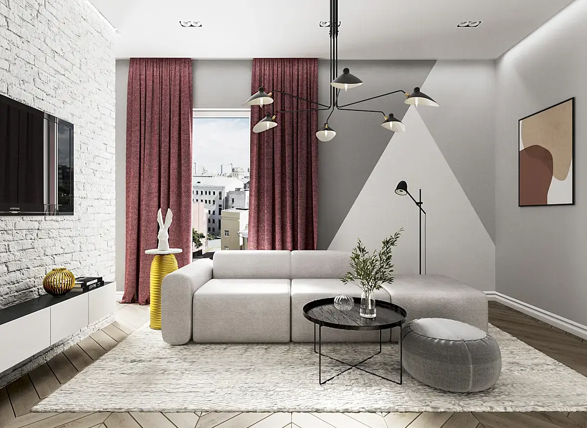 Композиция тоже почти хорошая, но её портит фокусная "вытянутость" камеры - вынесите камеру за пределы помещения и включите клиппинг, отрегулировав его, чтоб ближняя граница клиппинга внутри комнаты была.