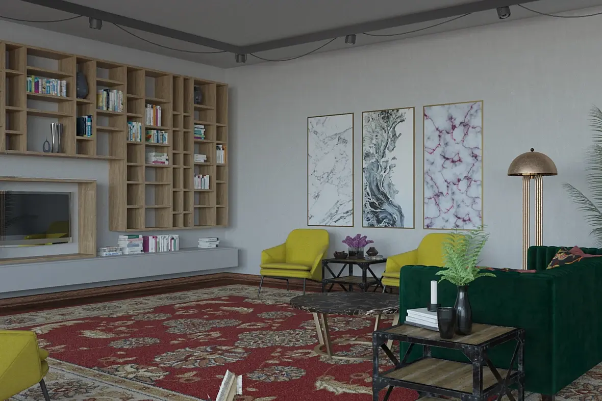 Попытка сделать деревенский "Энди Ворхол" стиль не получился. Как и в предыдущем комментарий, тускло и скучно по дизу: слишком много всего которое между собой ну никак не получилось сочетать. В целом пусто как будто хотели впихнуть основой минимализм, еще какое то непонятное соединение советским дачным стилем. Наполнение тоже непонятное, зачем разные картины в золотых рамках? По зонированию тоже много вопросов, как и по расположению и выбору осветительных приборов. Ощущение что просто набор всего что попадало на глаза. По визу дневной свет не совпадает с бэком (бэк слишком пересвечен), нужно поработать с материалами. Контраста нету, сыро все