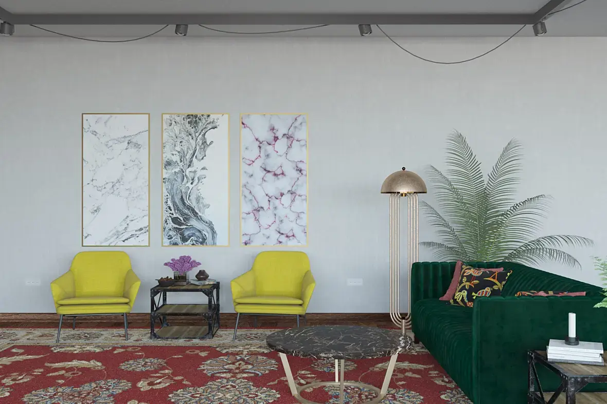 Попытка сделать деревенский "Энди Ворхол" стиль не получился. Как и в предыдущем комментарий, тускло и скучно по дизу: слишком много всего которое между собой ну никак не получилось сочетать. В целом пусто как будто хотели впихнуть основой минимализм, еще какое то непонятное соединение советским дачным стилем. Наполнение тоже непонятное, зачем разные картины в золотых рамках? По зонированию тоже много вопросов, как и по расположению и выбору осветительных приборов. Ощущение что просто набор всего что попадало на глаза. По визу дневной свет не совпадает с бэком (бэк слишком пересвечен), нужно поработать с материалами. Контраста нету, сыро все