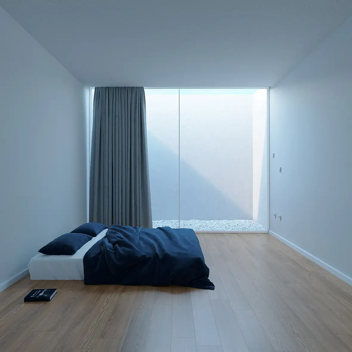 Возможно, стоит сделать весь дом. Одна комната не слишком информативна, больше похоже на недобитую предметку, как уже сказали выше, а целый дом в таком стиле будет интересен, тем более там как минимум два уровня и выраженный рельеф, судя по виду за окном.