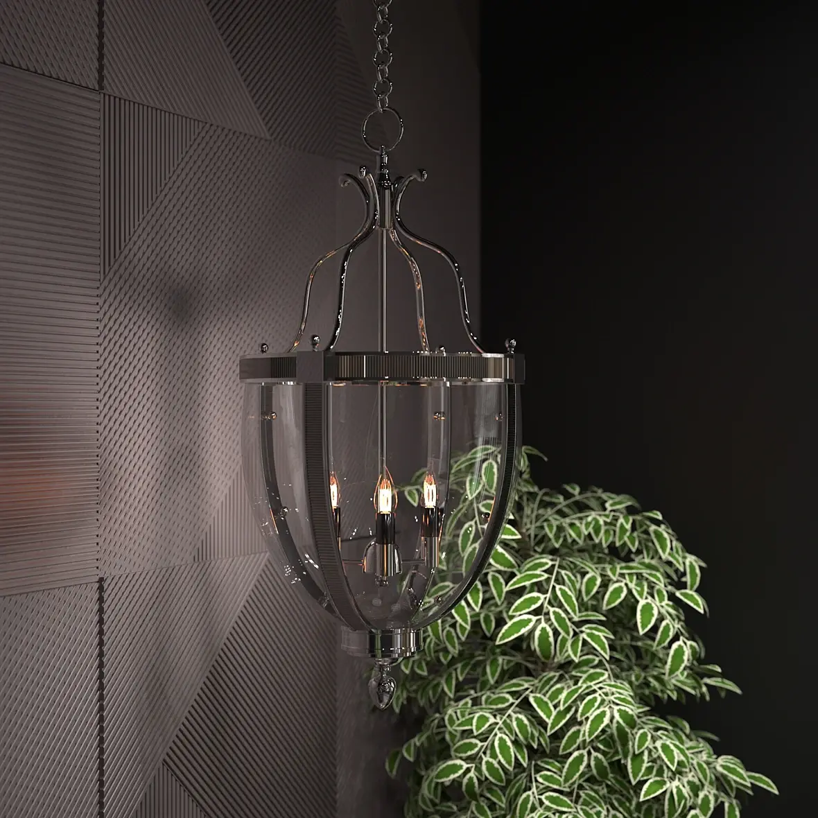Лично я считаю, что композицию можно было бы чуть изменить так, чтобы в кадре было понятно куда и на что нужно смотреть. Много на себя берут растения, я бы в два раза меньше пространства им выделил на картинке. И потолка тоже многовато. Кадр с тв "заперпендикулярил" бы со стеной, так было бы интересней на мой взгляд. А виз хороший получился.