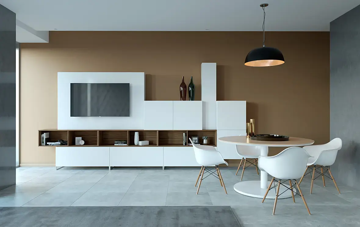 я бы точки добавила накладные в зоне тв гарнитура, и вот эту стену слева может не такую глянцевую и потемней, просто светильник справа очень берет на себя иии вот эту его черную матовость надо где-то повторить, и я предлагаю на левую стену, ну или ковер потемней. А почему экран телика ребристый? Полки в гарнитуре которые деревяные - тайлится текстура