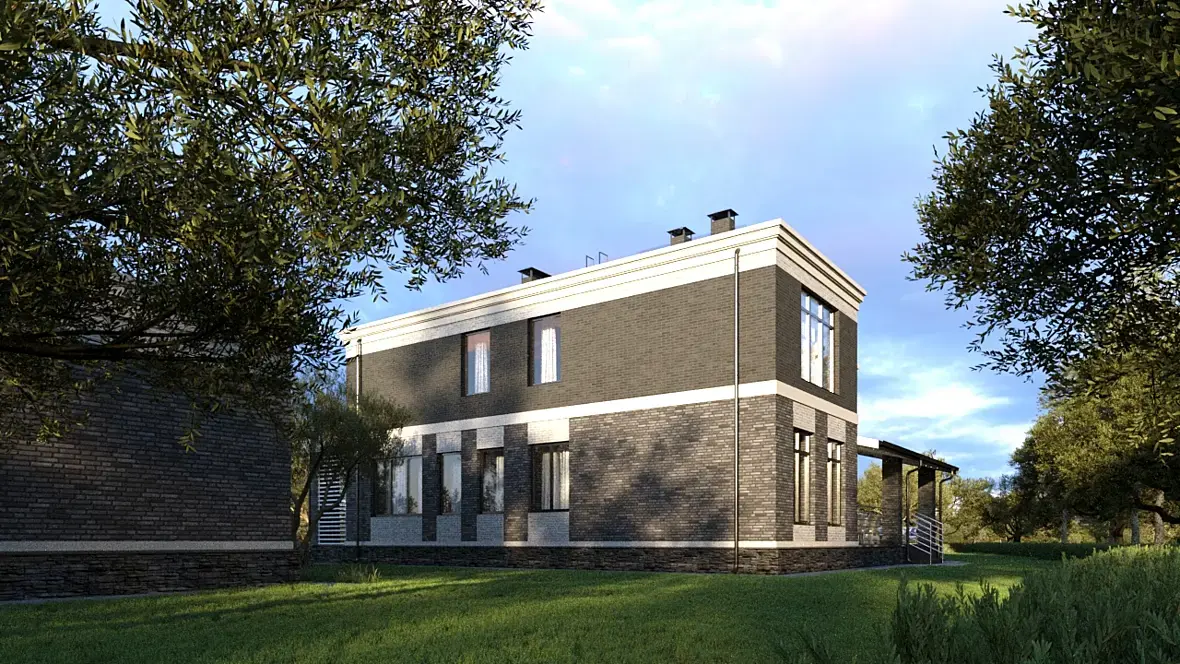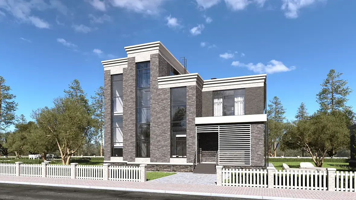 Да, я думал добавить немного потёков на штукатурку, но не стал рисковать. Всё таки это проект нового дома, не известно как заказчик бы отнёсся. Может тогда если время будет доделаю для себя. За наводку на косяк на крыльце спасибо, не заметил.