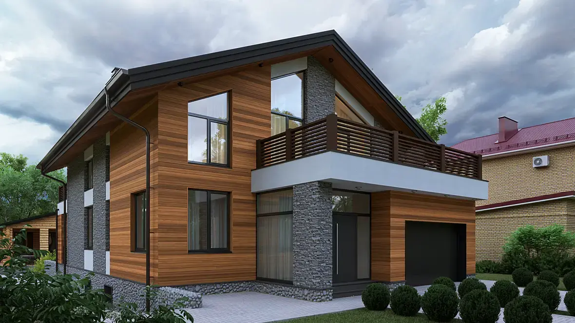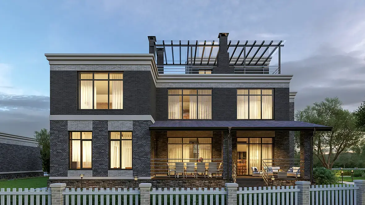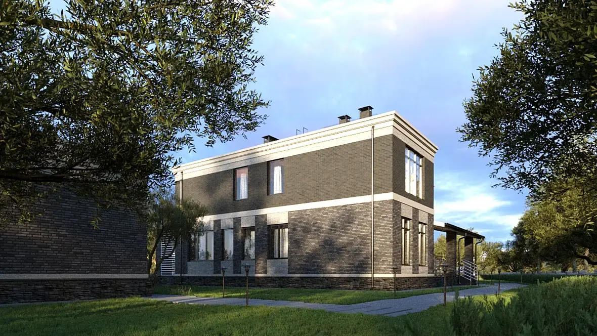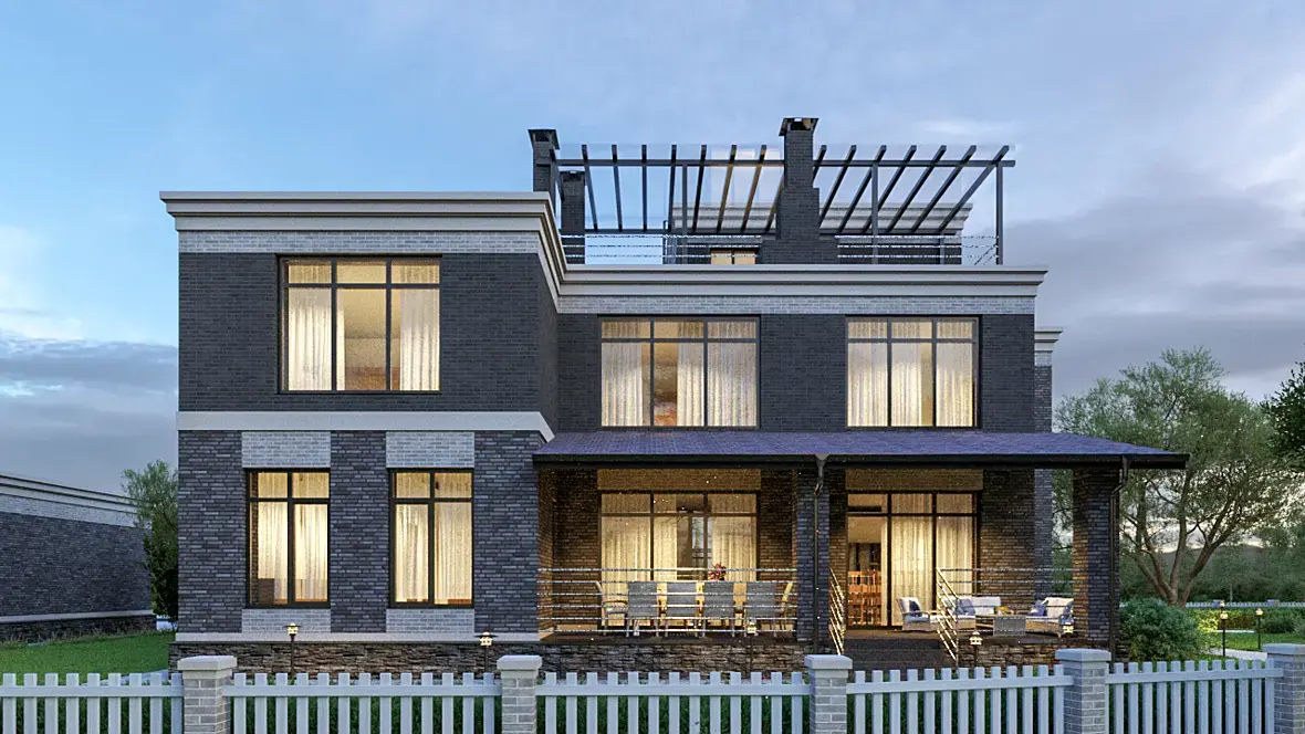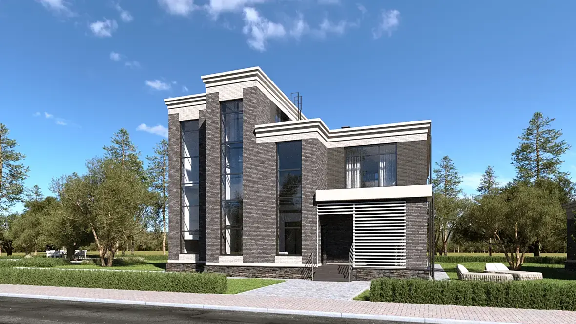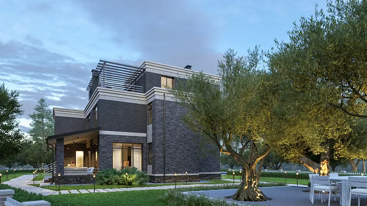 Да, я думал добавить немного потёков на штукатурку, но не стал рисковать. Всё таки это проект нового дома, не известно как заказчик бы отнёсся. Может тогда если время будет доделаю для себя. За наводку на косяк на крыльце спасибо, не заметил.