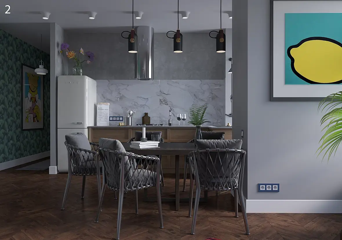 2. Освещение в интерьере у Вас тусклое какое-то плюс свет везде разный получился. Может это так и задумано, не знаю.
