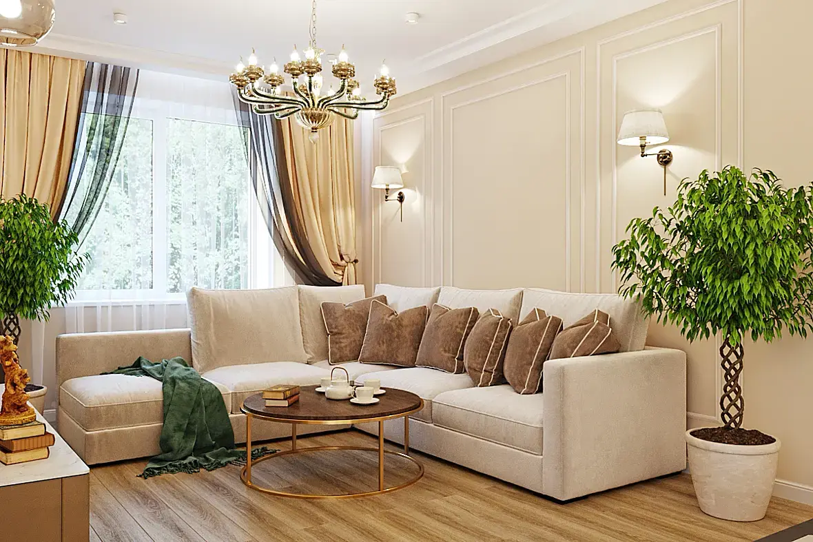 по дизайну дерево не очень тут, бра чуть пониже, угол комода слева снизу лучше вообще убрать для кадра, ламинат-паркет так не укладывают ровно, нужно смещение, тюль хотелось бы поплотнее, молдинги на стене может подобрать пофактурнее, с вензельками небольшими в углах, ковер для уюта(но это нв вкус, можно и без него)