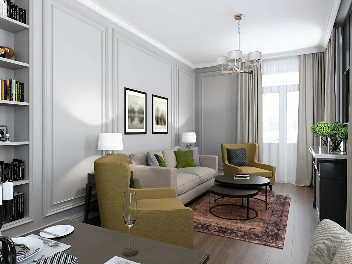 Визуализация гостиной для клиента.