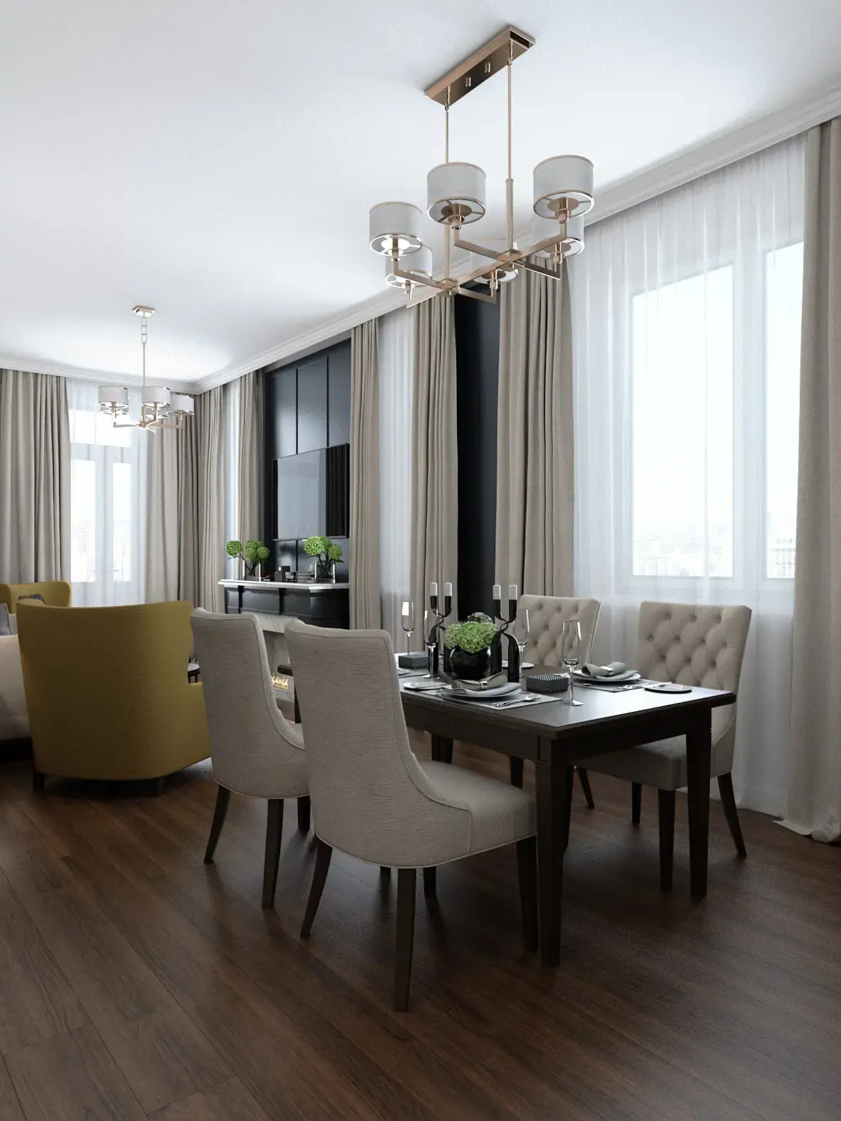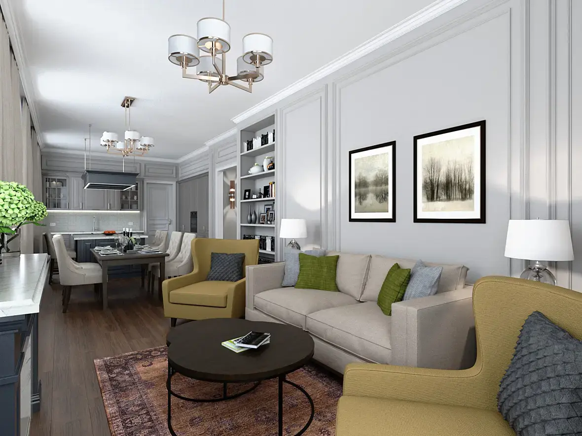 Визуализация гостиной для клиента.