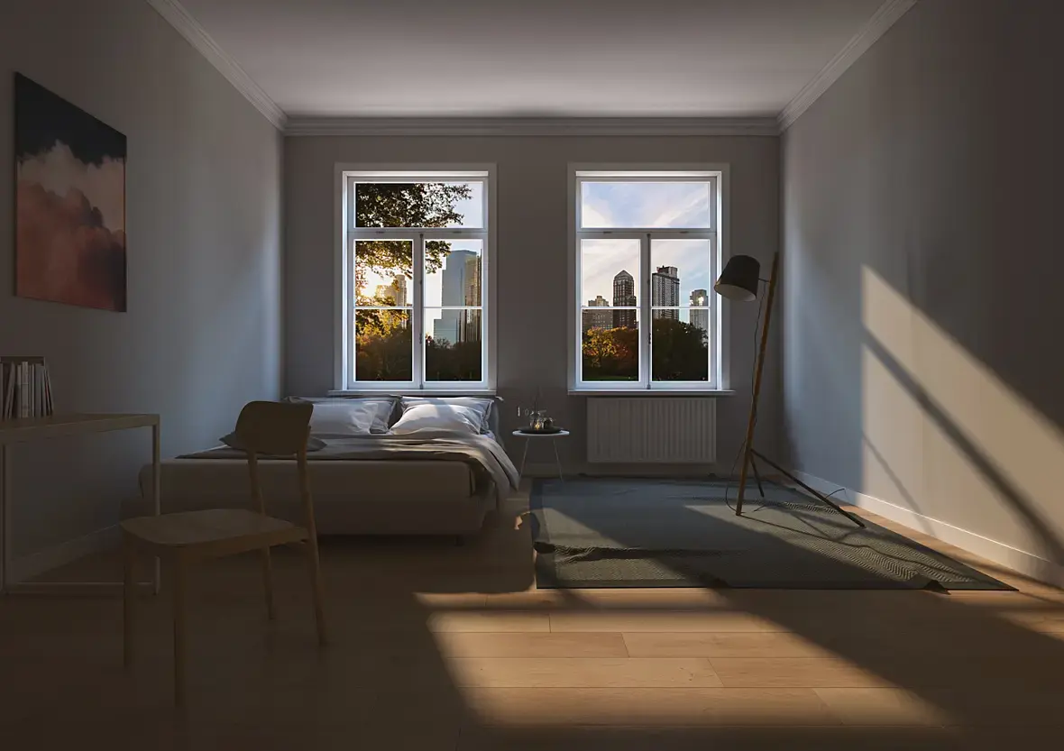 в хате пустовато, скомпонуйте кадр. занавеска тут не вписывается, за окно нужен бэк, так то вроде не плохо, еще бы постобработку в фш и будет нормально