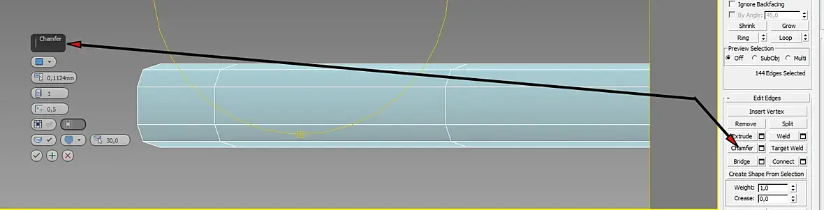 Нажимаем chamfer и сглаживаем грани нашей пластинки.