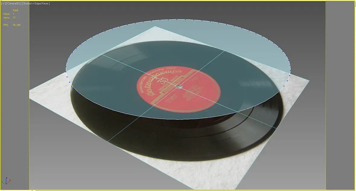 Создаем плоскость с 64 гранями (количество граней важно для последующего сглаживания модели). В настройках делаем её полупрозрачной, нам важно видеть под нашей геометрией наш план с текстурой пластинки.