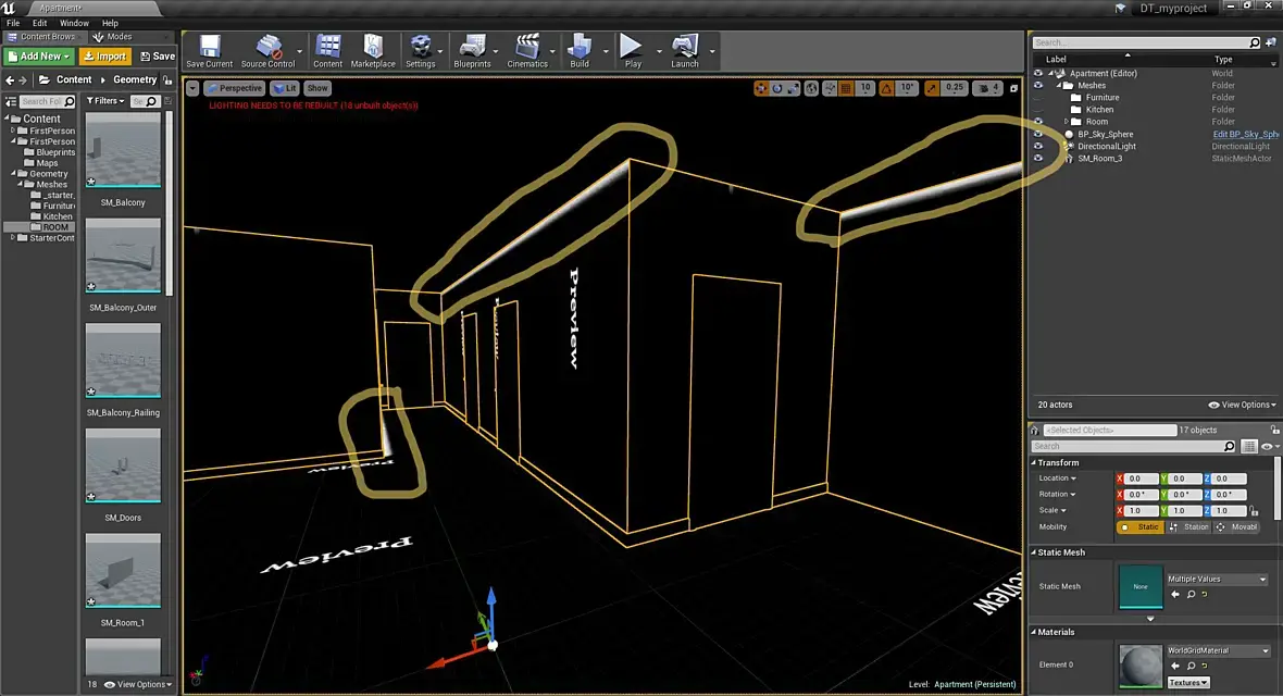 Lightmass importance Volume – ограничивает область просчёта света в хорошем качестве, снижая нагрузку на видеокарту.