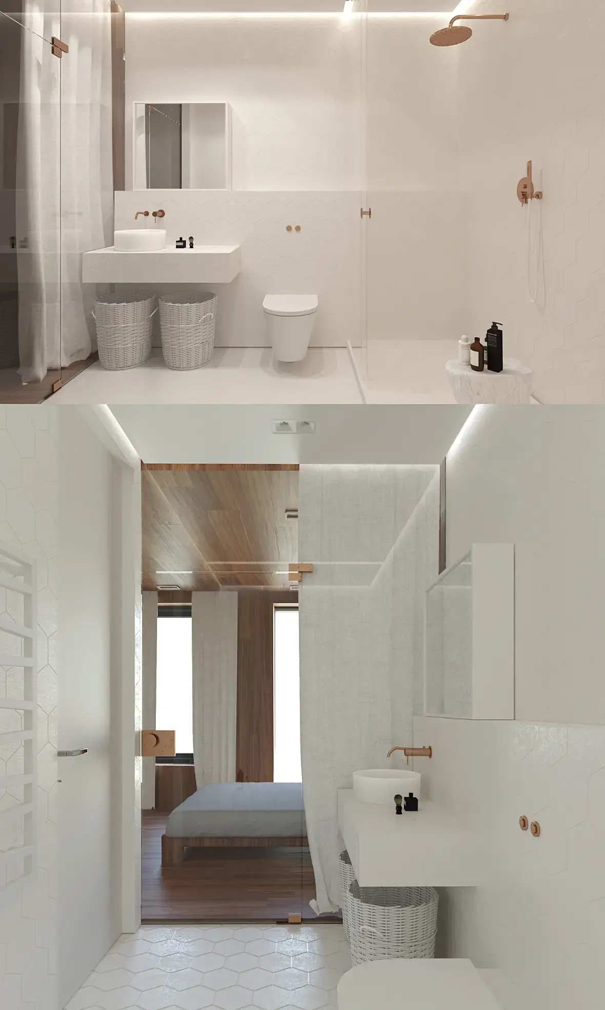 Здравствуйте, делаю работу по данному референсу:https://www.behance.net/gallery/77844599/sm3h?tracking_source=search-all%7Csirotov Сделал санузел, мне написали что работа нуждается в доработке. Буду всем благодарен за все недочёты которые кидаются в глаза. Чем больше - тем лучше, так как я ещё учусь. Фон за окном специально не вставлял, так как его и не было в исходнике. Решил обратить внимание на плитку, которая на референсе матовая и не плоская. Много белого цвета, также как и в оригинале.